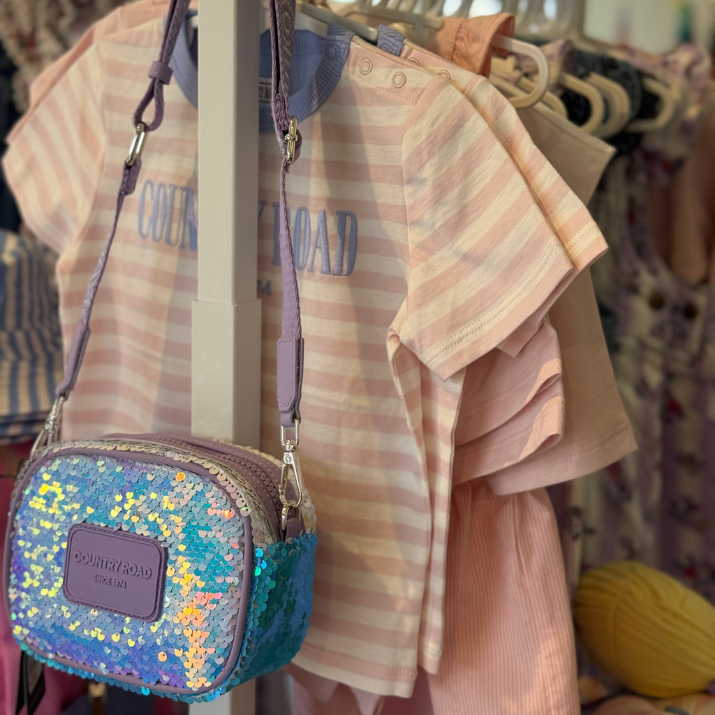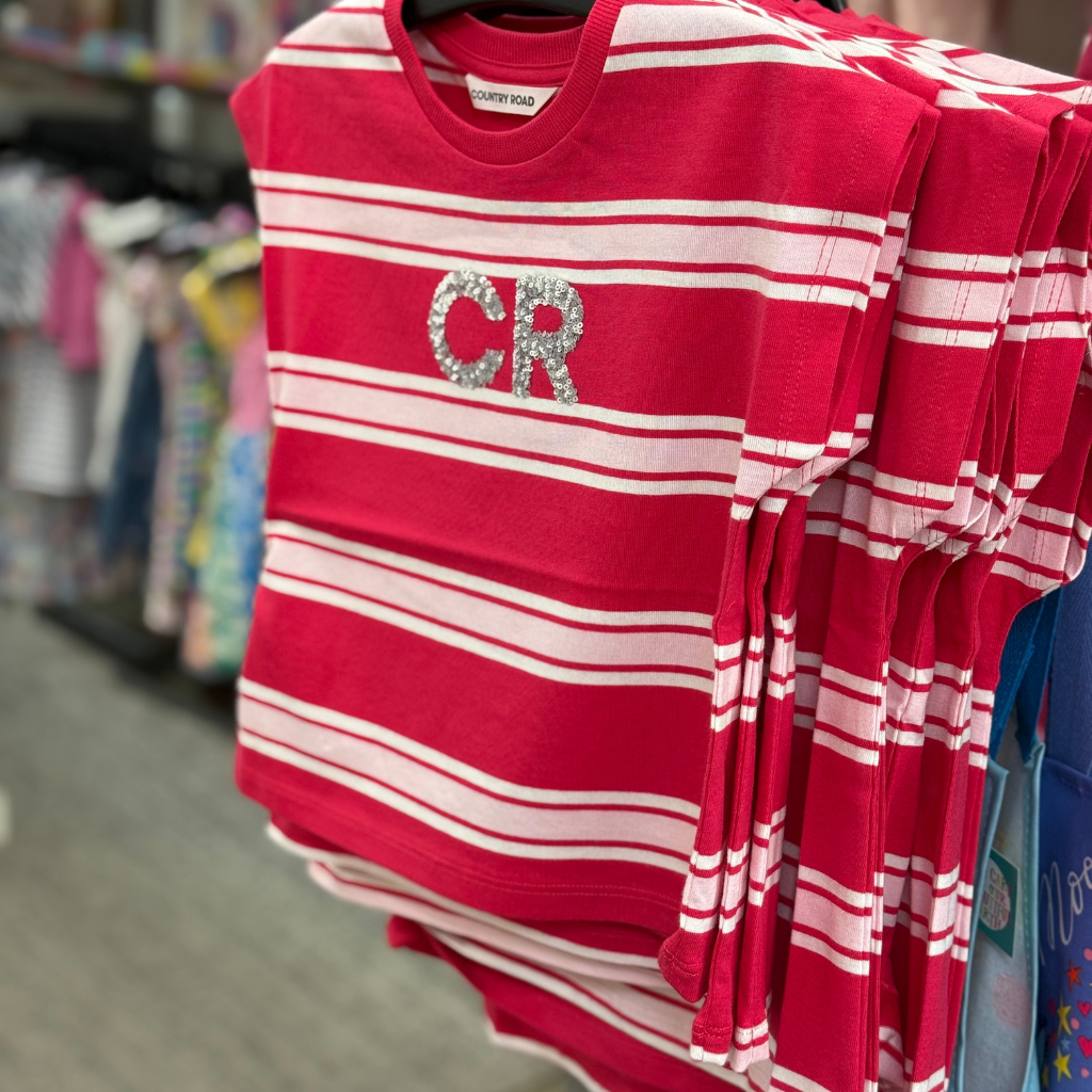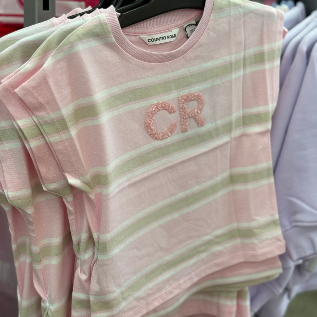 Country Road Stripe CR Sequin Tee (Dawn Pink)