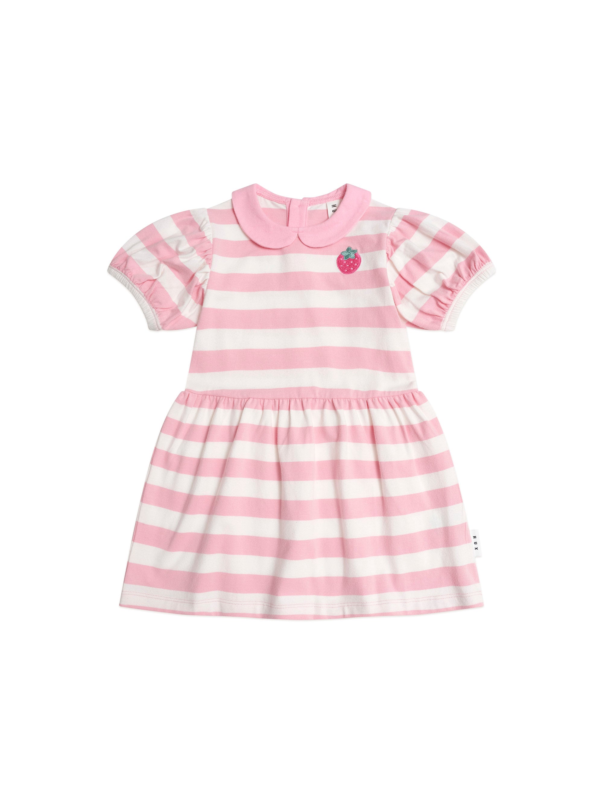Huxbaby Strawberry Stripe Puff Sleeve Dress (Strawberry/Almond Milk) - Baby