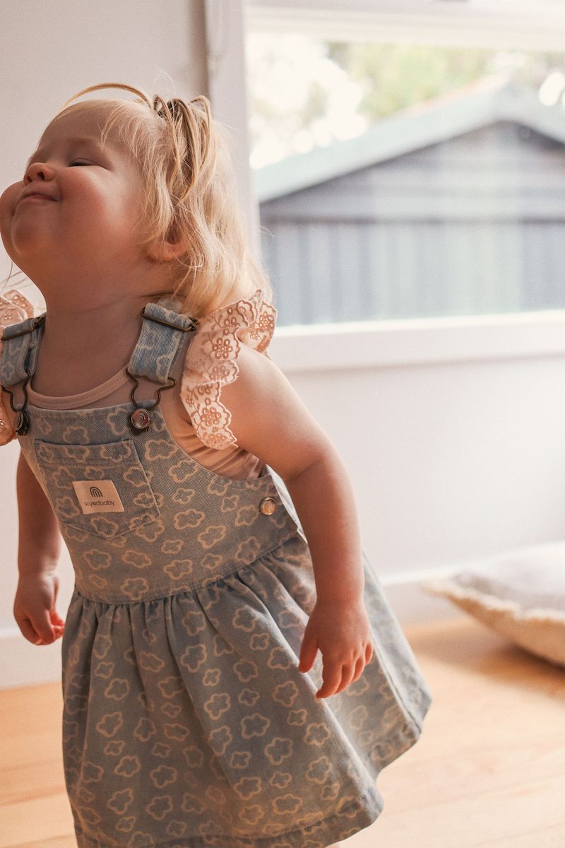 This timeless cotton denim pinafore from KYND Baby blends vintage charm with everyday durability. Garment-washed for softness and finished with sturdy silver hardware, this versatile piece is designed to last through endless wear. Easy to layer and style, it’s a nostalgic wardrobe staple made for play or special occasions!