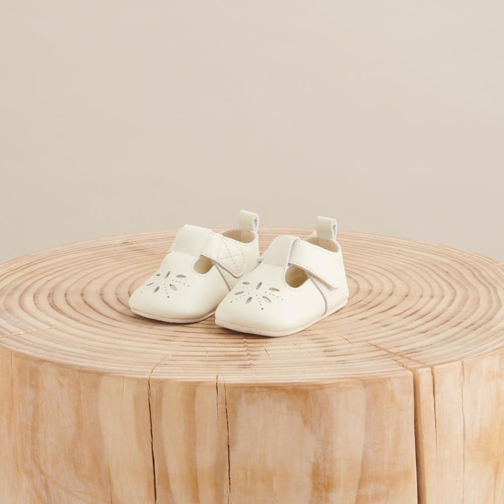 Purebaby Leather Eyelet T-Bar Shoe (Vanilla)