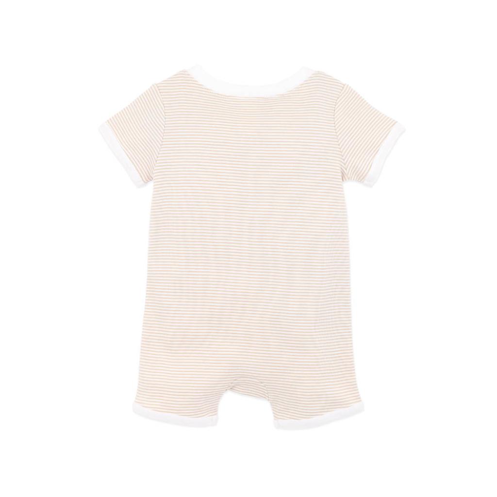 Keep your little one cool and comfy in this soft and breathable organic cotton zipsuit from Bebe. Featuring an all-over natural stripe and a sweet little giraffe friend at the chest, this easy one-piece is made for sunny day adventures and cozy cuddles. The short sleeves and short legs keep things breezy, while the front zip opening makes for quick changes on the go. A soft, stretchy rib finish ensures all-day comfort.