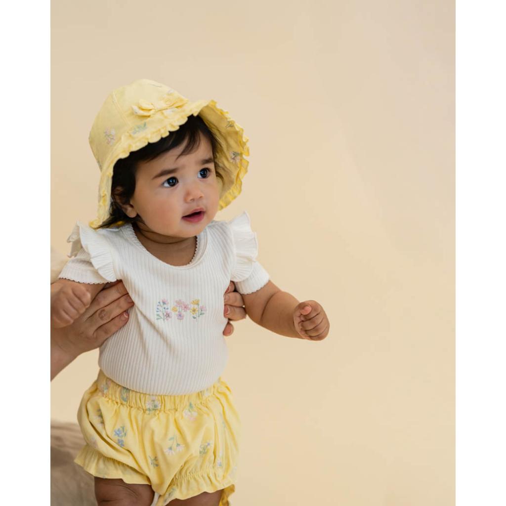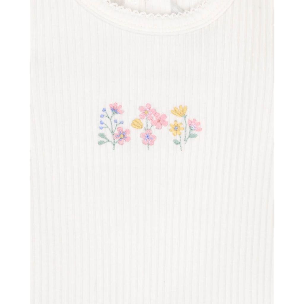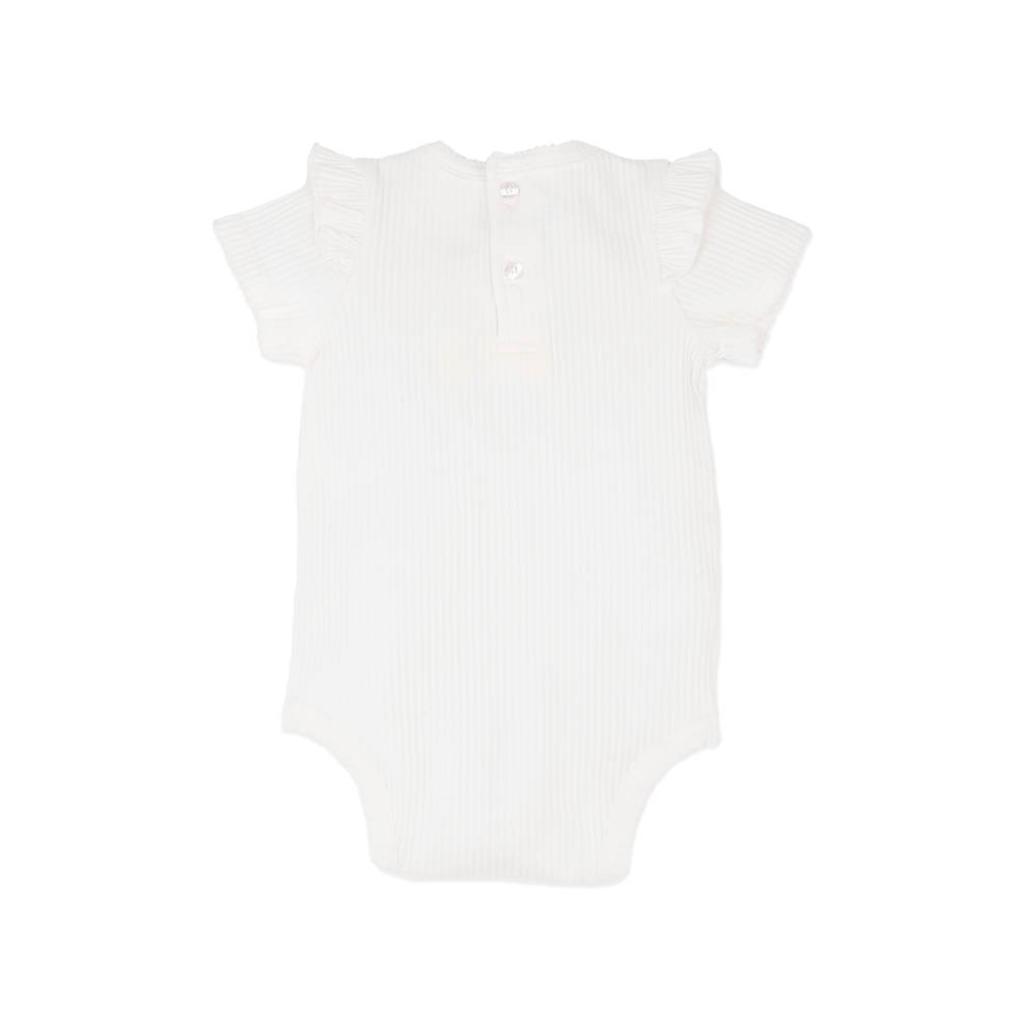 Add a sweet touch to your little one’s everyday essentials with this charming ribbed bodysuit from Bebe. Crafted from a soft and stretchy organic cotton and elastane blend, it features delicate floral embroidery at the chest and adorable frill sleeves, all finished with dainty picot trim along the neckline and sleeves for an extra pretty detail. A button opening at the back neck and convenient press studs at the crotch make dressing and nappy changes fuss-free.