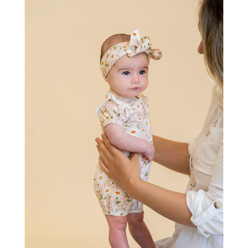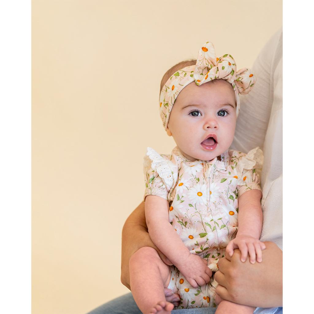 Full of sunshine and sweet vintage charm, the Tess short sleeve zipsuit from Bebe is made for play, cuddles and everything in between. Crafted from a soft and comfy cotton elastane blend in a delicate daisy print, it features fluttery broderie anglaise sleeves and gentle gathers at the leg. A concealed zip front makes changes quick and easy — perfect for busy little days.