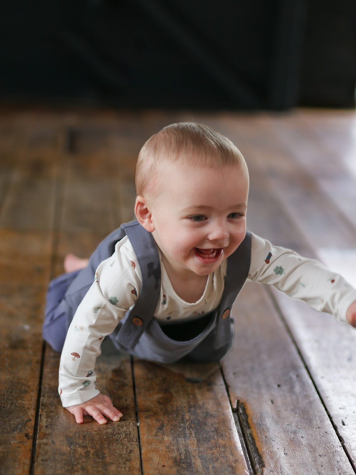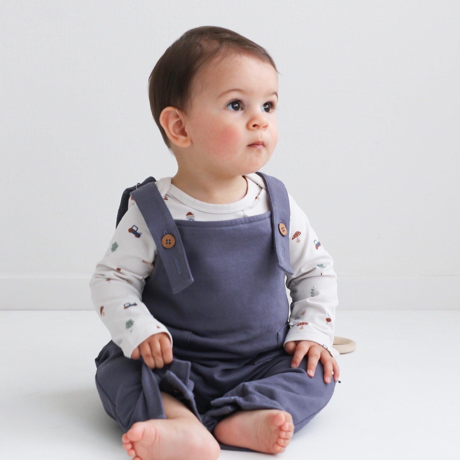 From the Burrow & Be winter range are these gorgeous, thick organic cotton overalls, in a beautiful ink colourway.