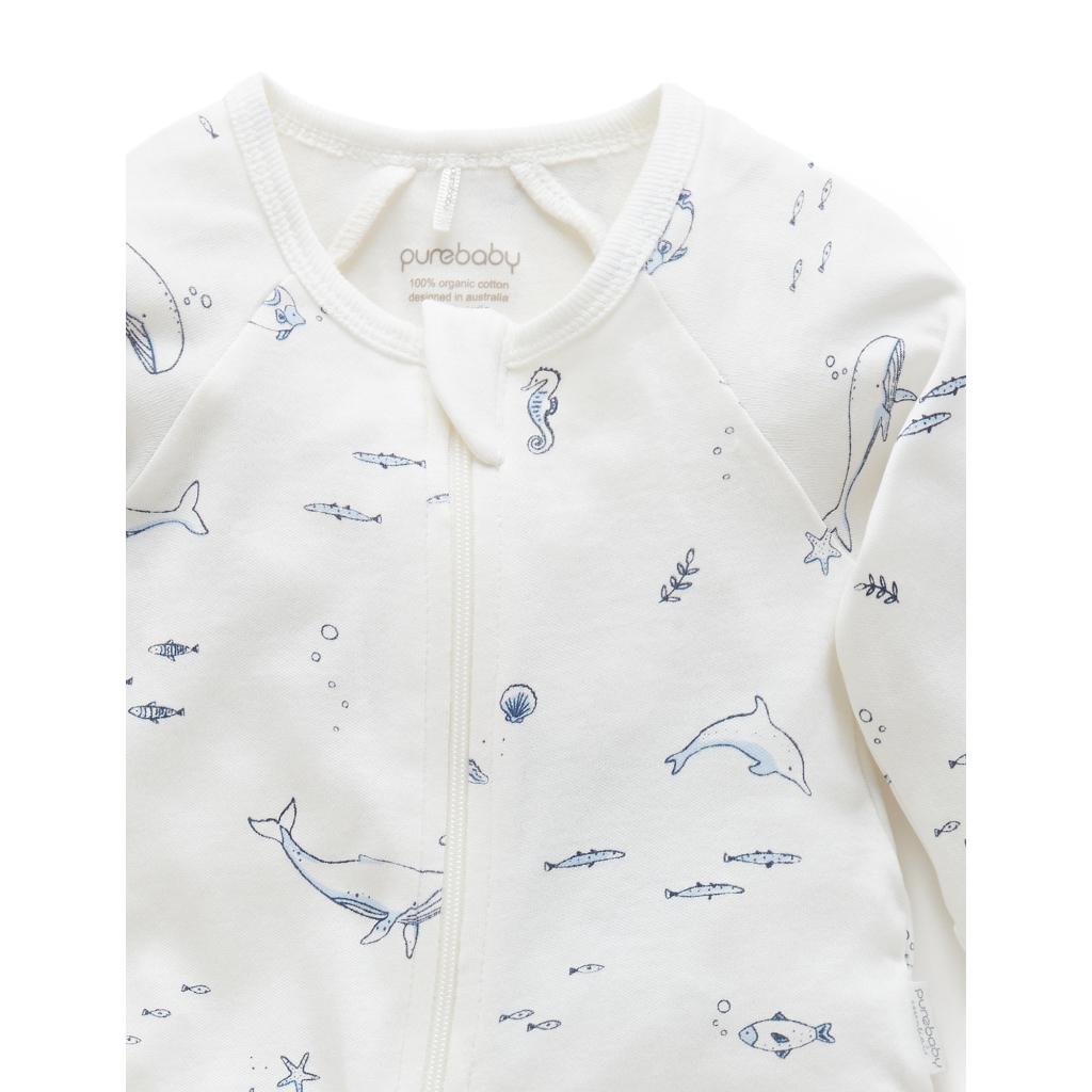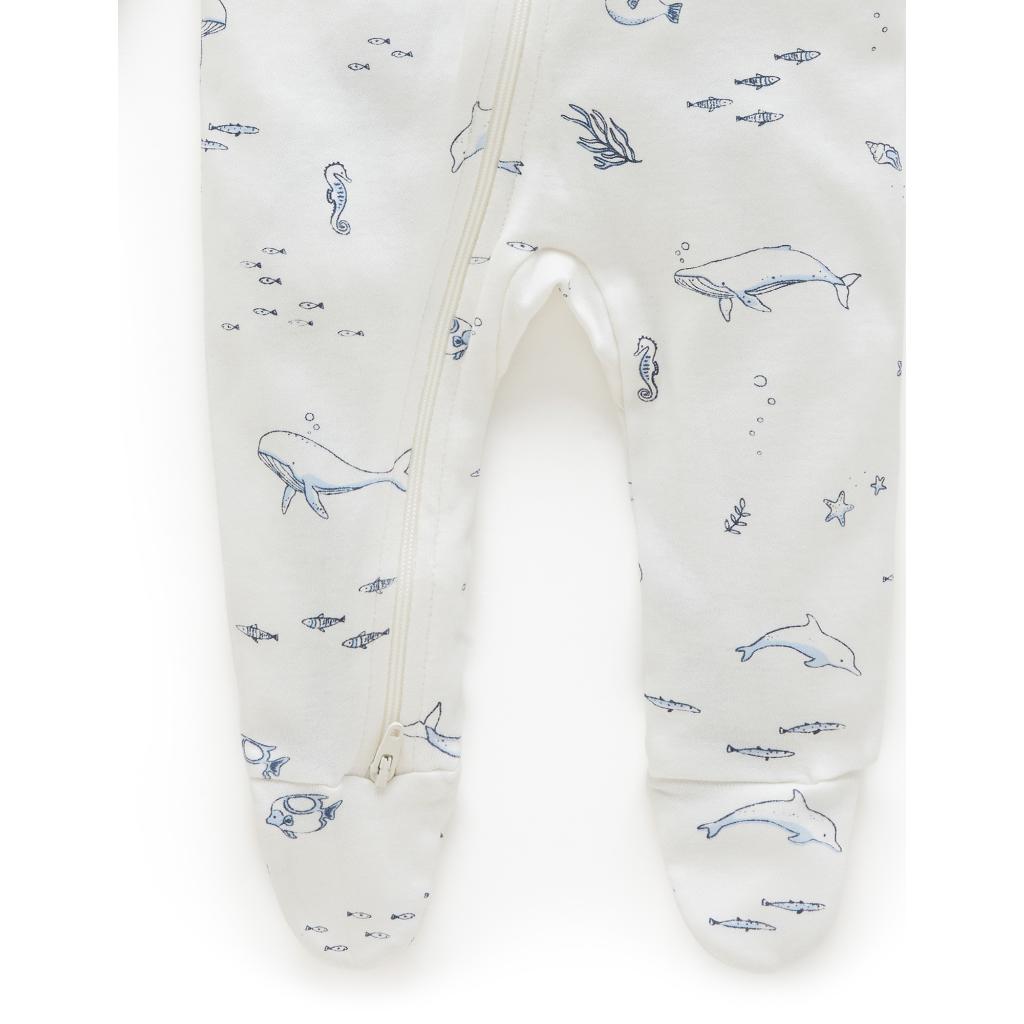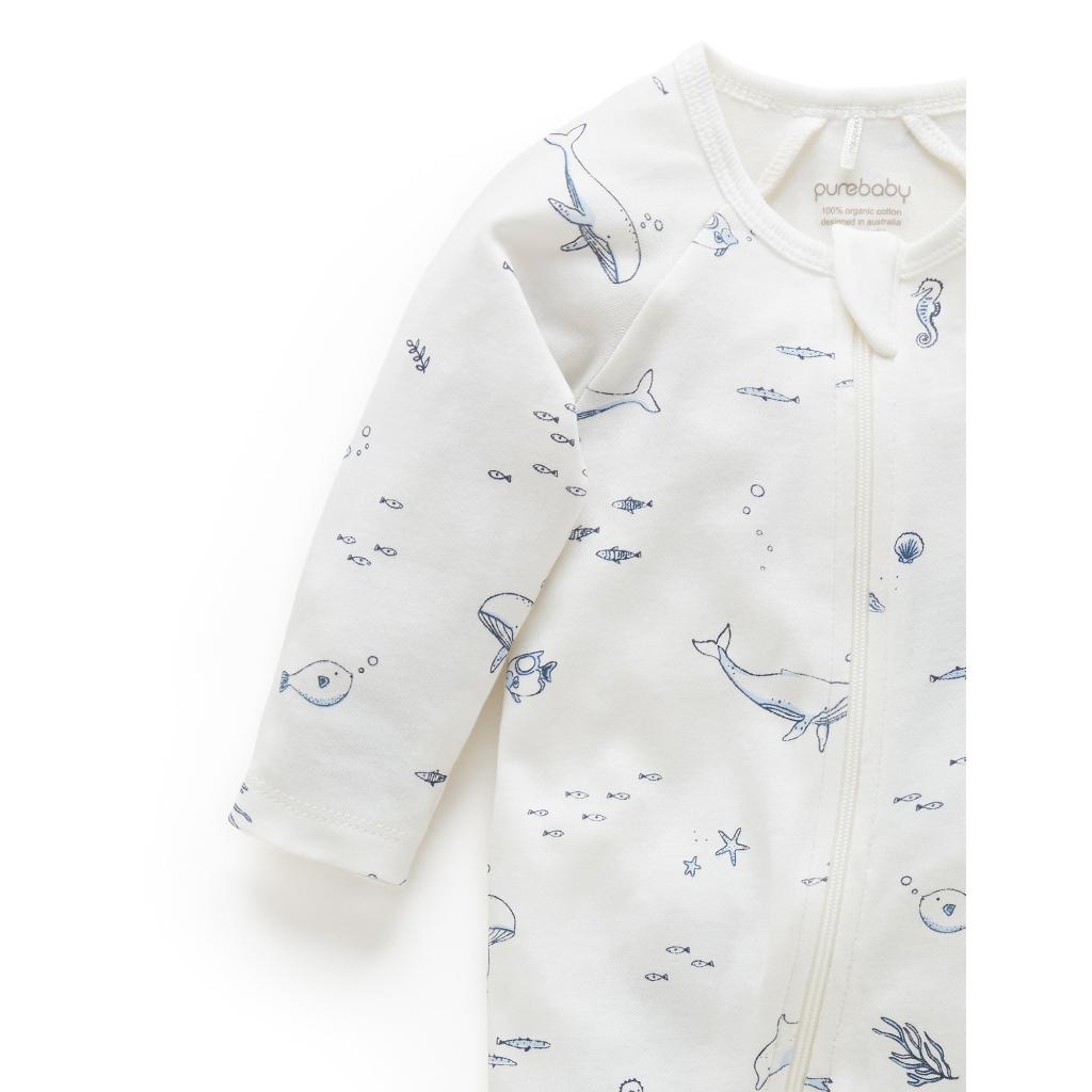 Long sleeve zip growsuit from Purebaby, in a sweet allover nautical print on a vanilla base.