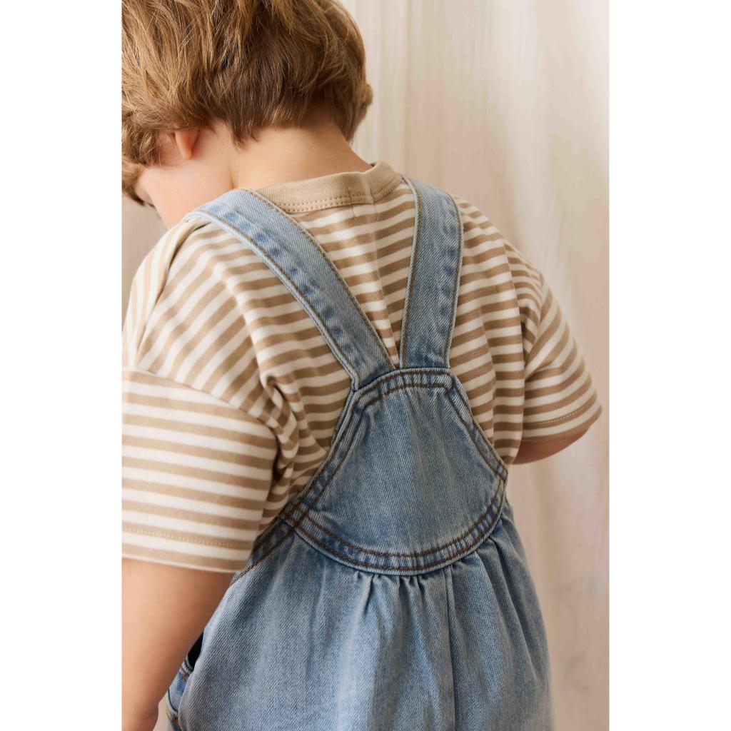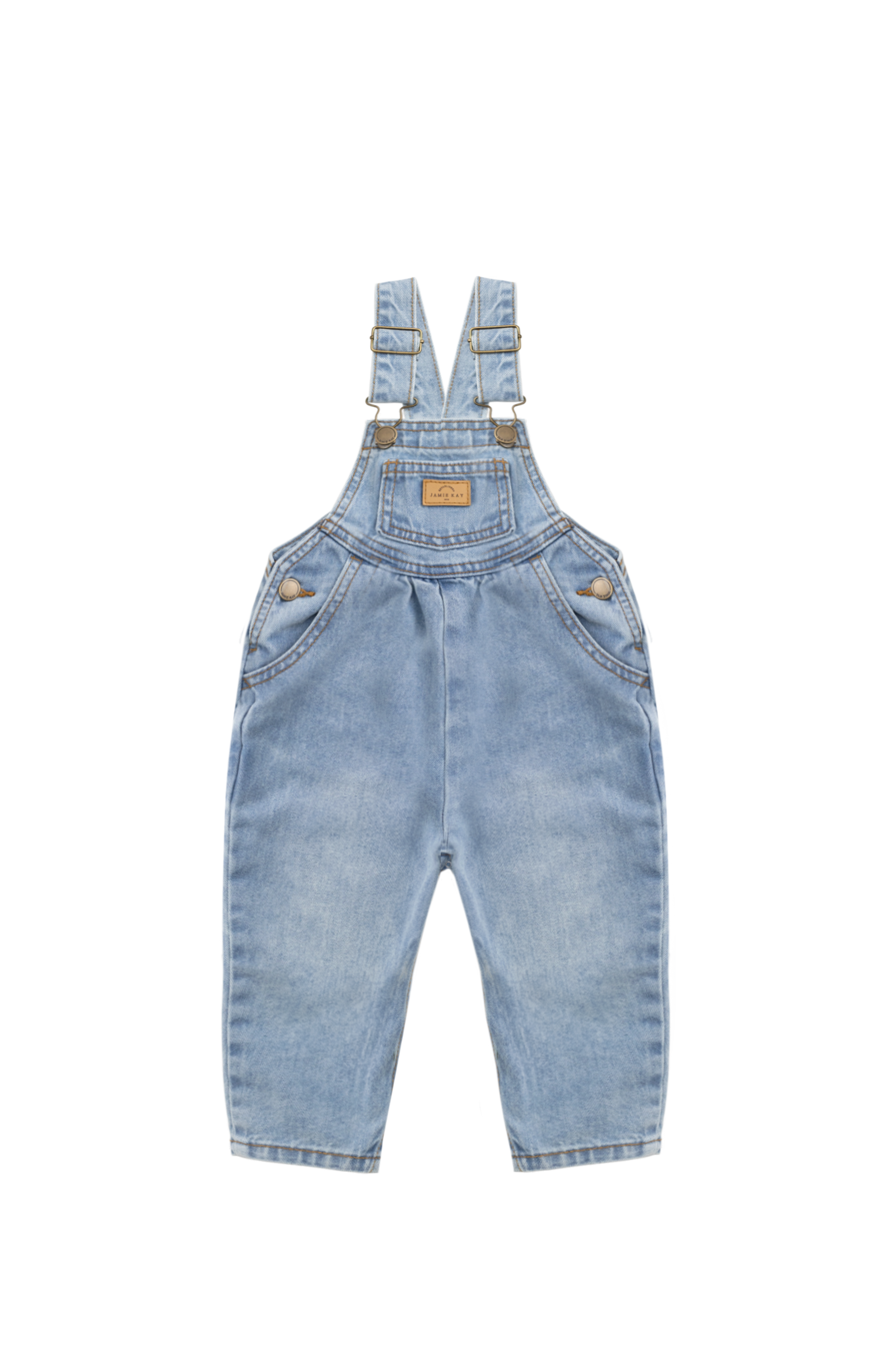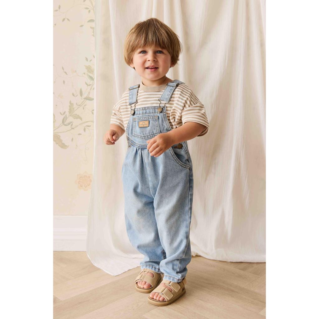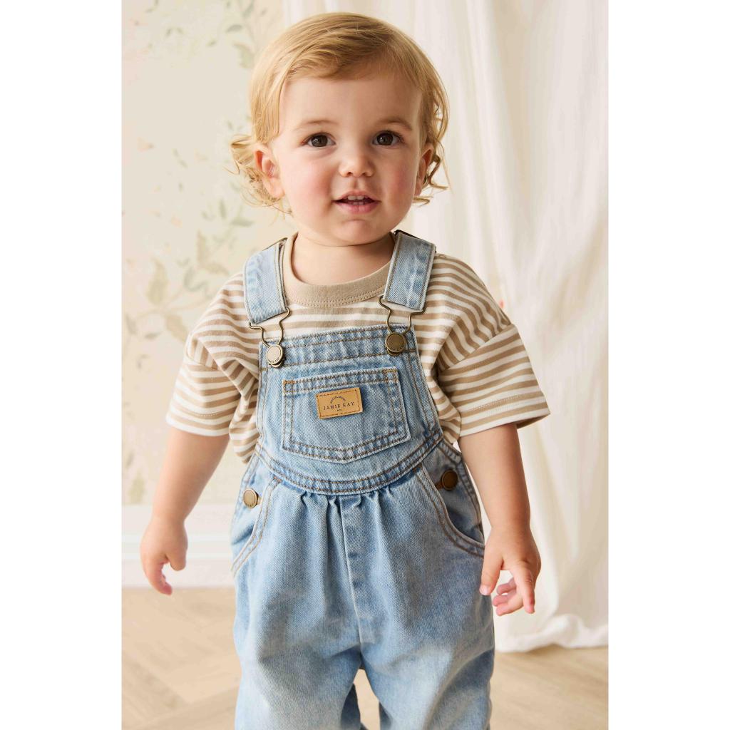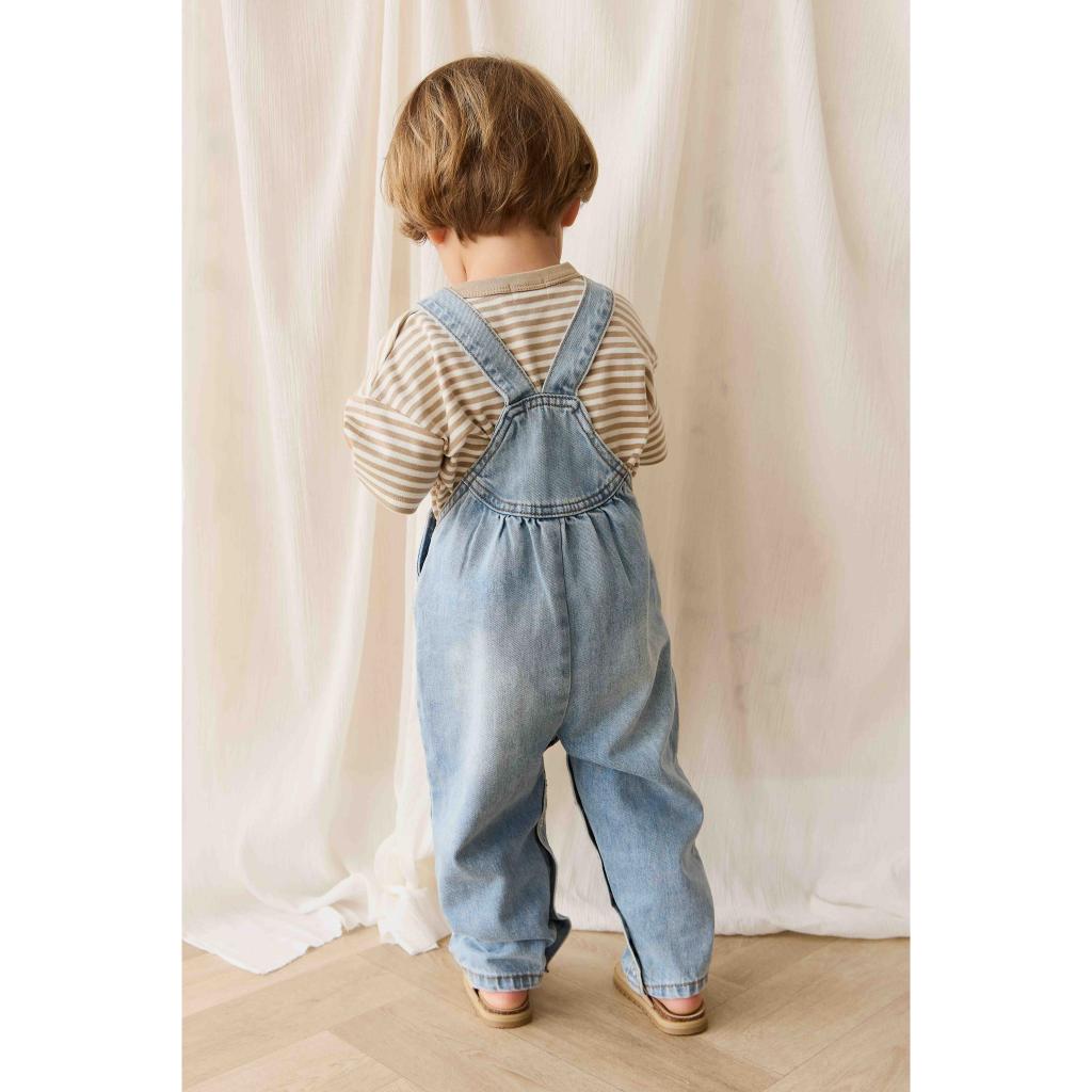 These Cecil overalls from Jamie Kay's Bonjour Cherie collection are a gorgeous vintage style, complete with adjustable straps and side domes, plus side and front bib pockets. In antique blue denim.