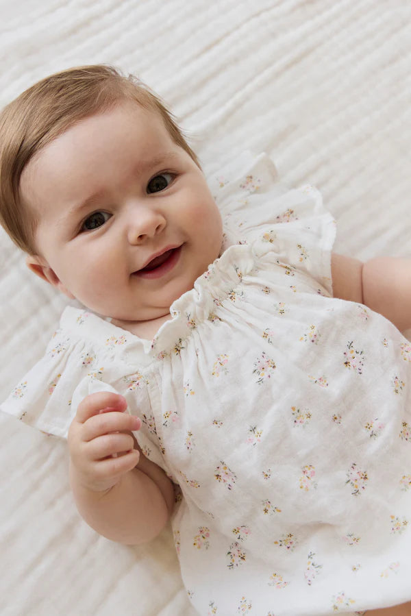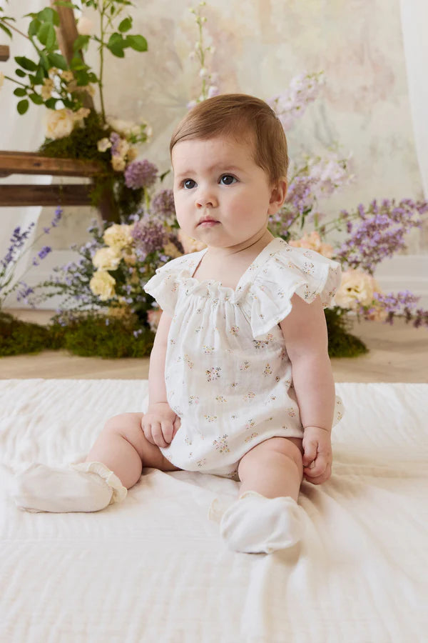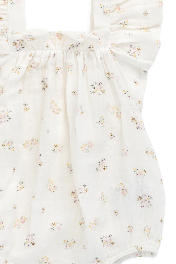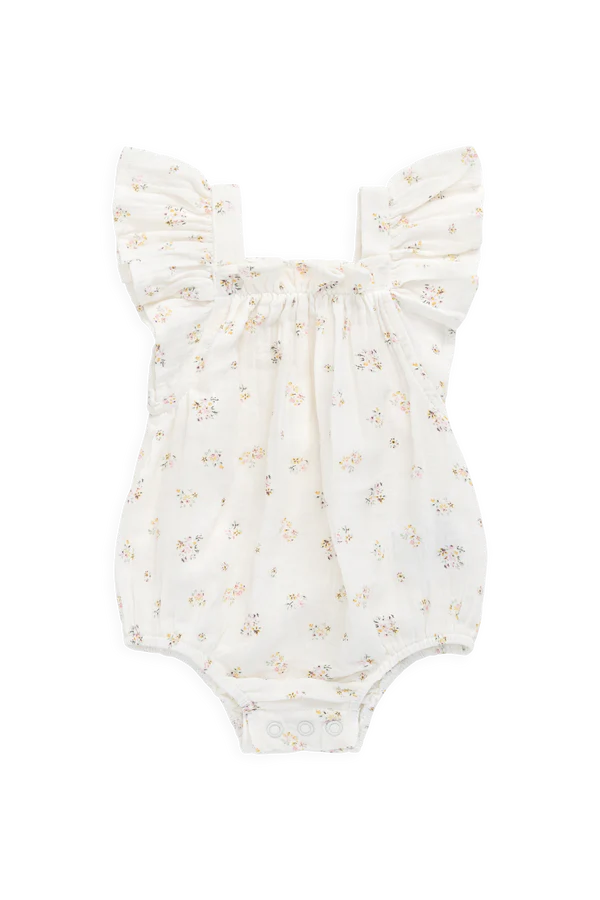 From the Jamie Kay Juniper Fields collection is this beautiful muslin Harriet playsuit in ayla whisper print.