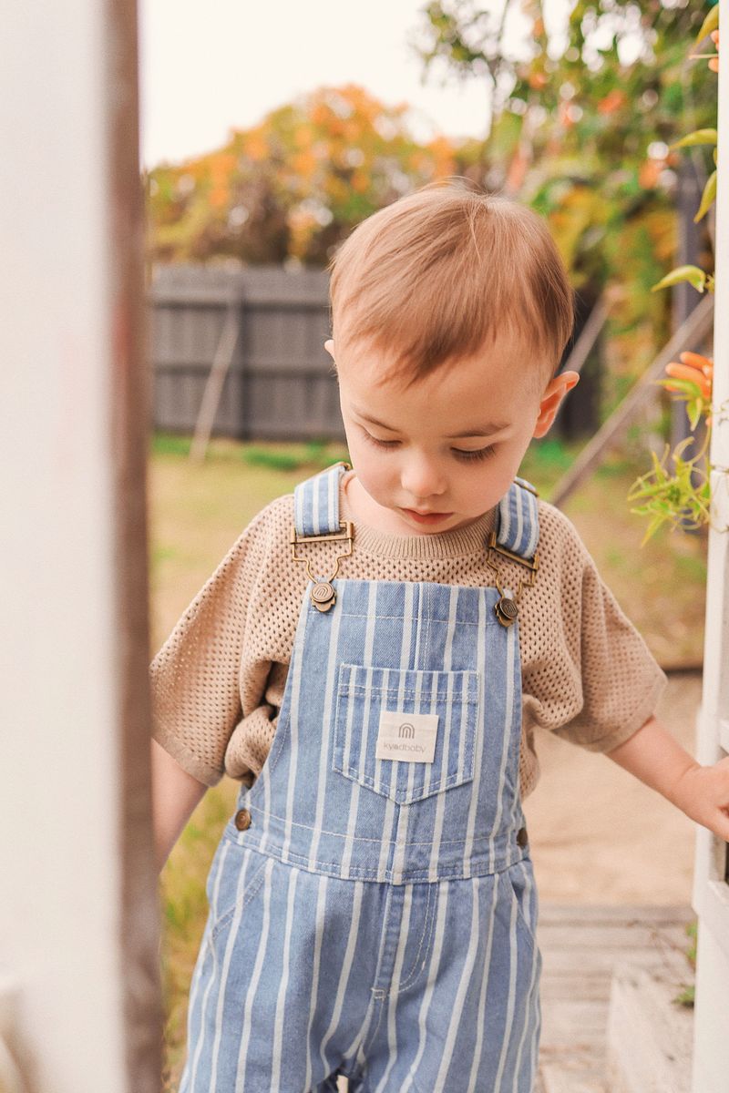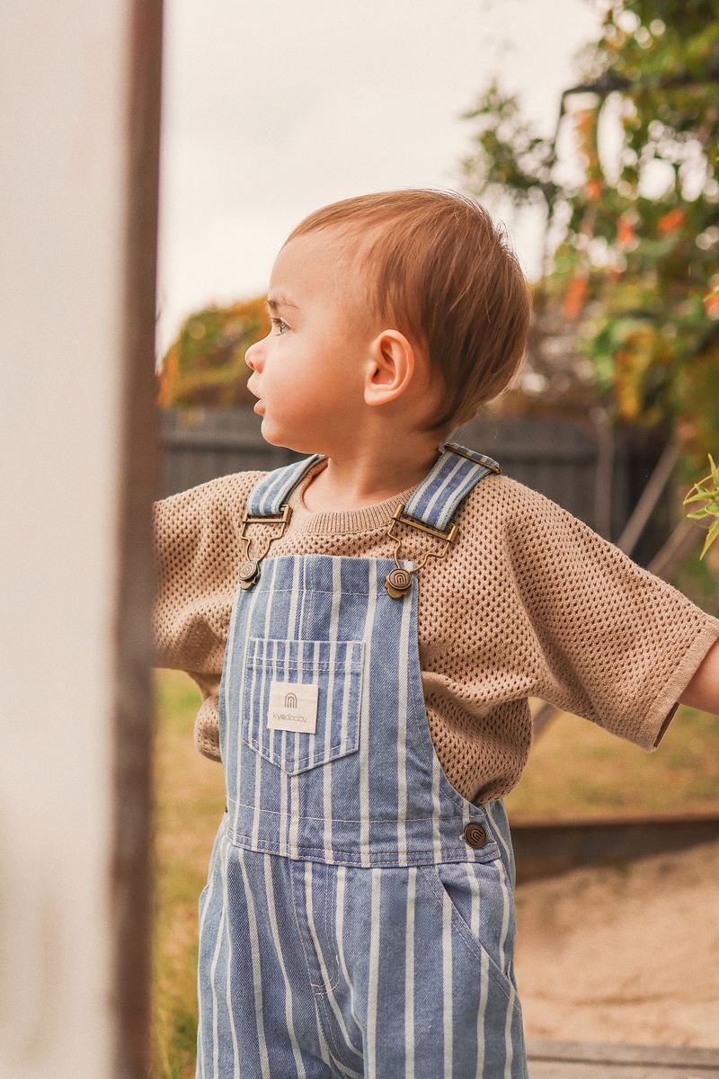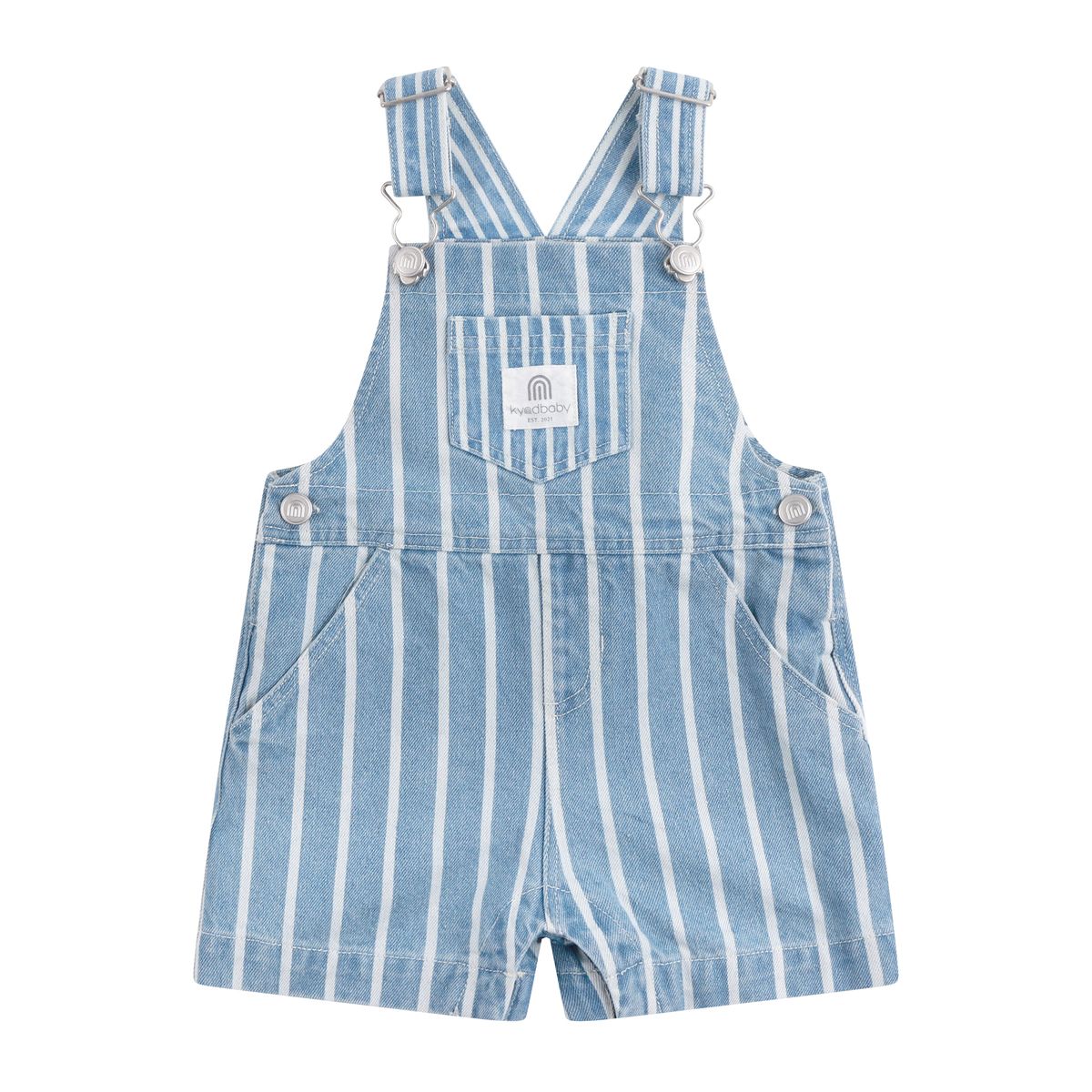 These adorable striped woven overalls from KYND Baby are made from 100% cotton in a soft denim-blue and white stripe. Light, airy, and breathable, they're perfect for warm-weather play. Silver snap buttons and hardware add a vintage touch, while easy closures and a relaxed fit make it just right for everyday comfort - dress it up or down with ease!