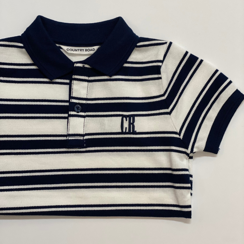 Country Road Logo Polo Shirt (Navy Stripe) - Baby