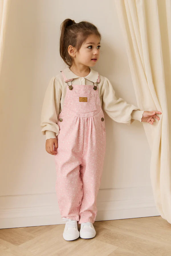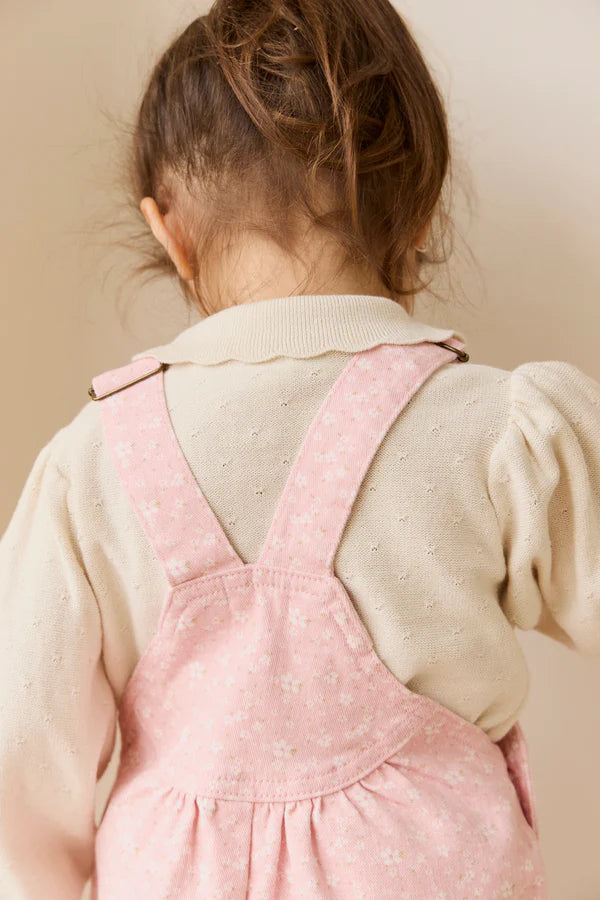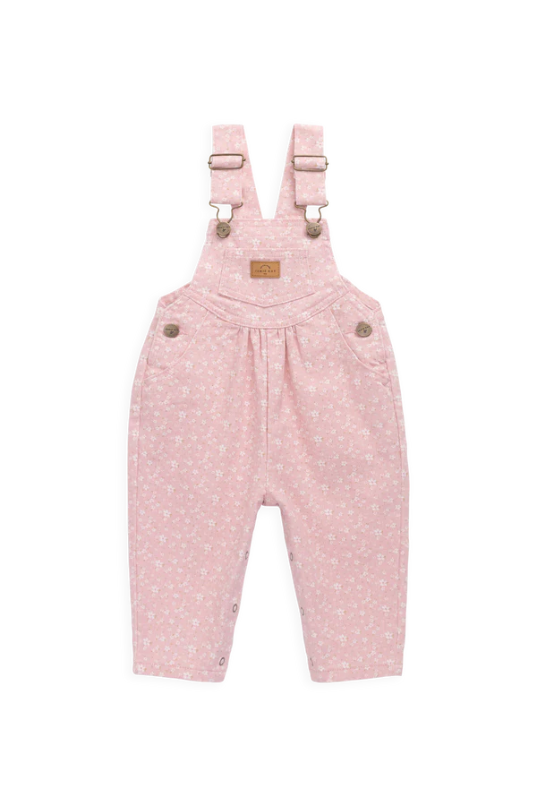 These Cecil overalls from Volume 1 of Jamie Kay's Homeward collection are a gorgeous vintage style, complete with adjustable straps and side domes, plus side and front bib pockets. In paula powder, a beautiful pink shade with a delicate allover floral design.