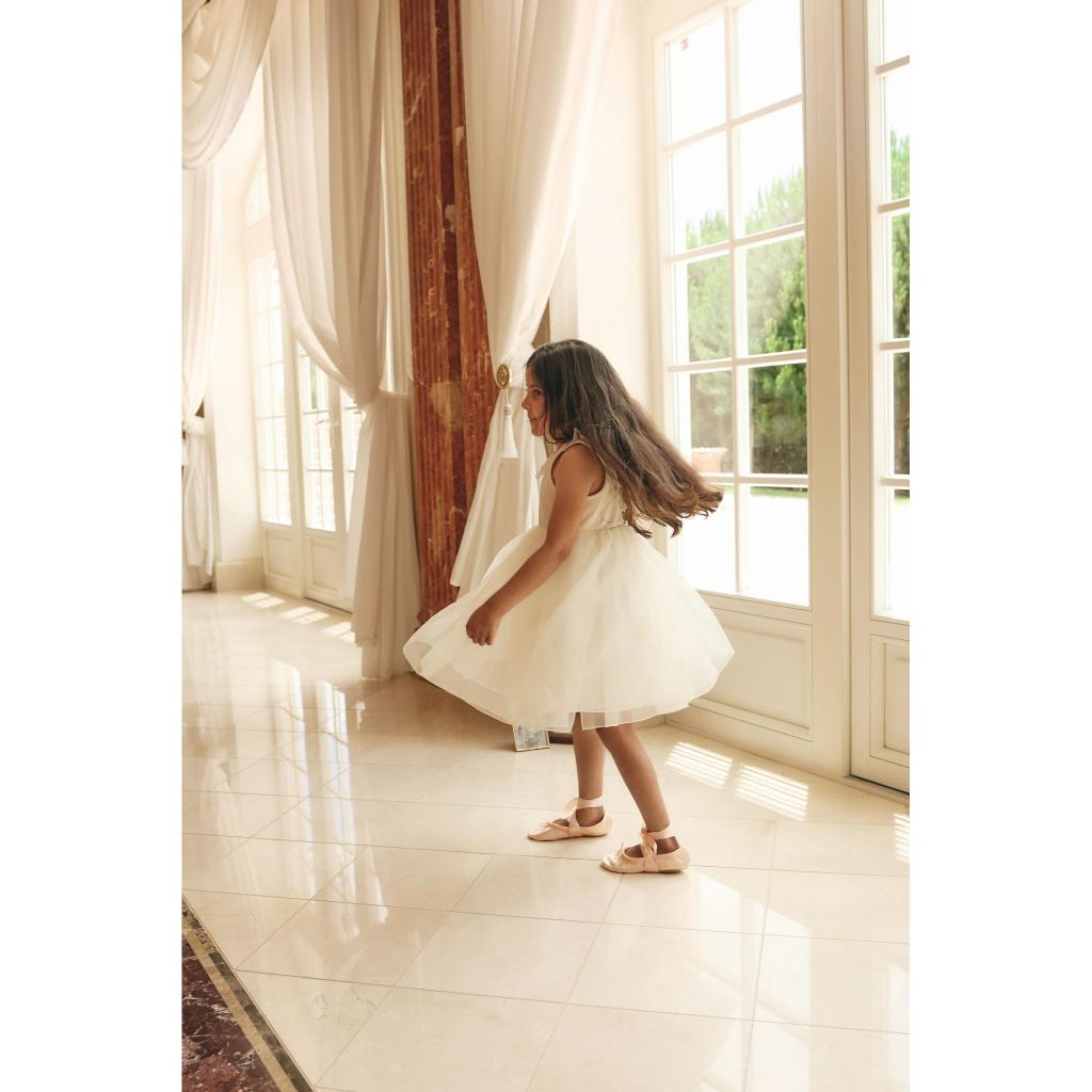Featuring a soft, stretchy cotton elastane bodice, a floaty polyester skirt, and a breathable cotton lining, this piece is perfect for twirling through special moments or everyday play.