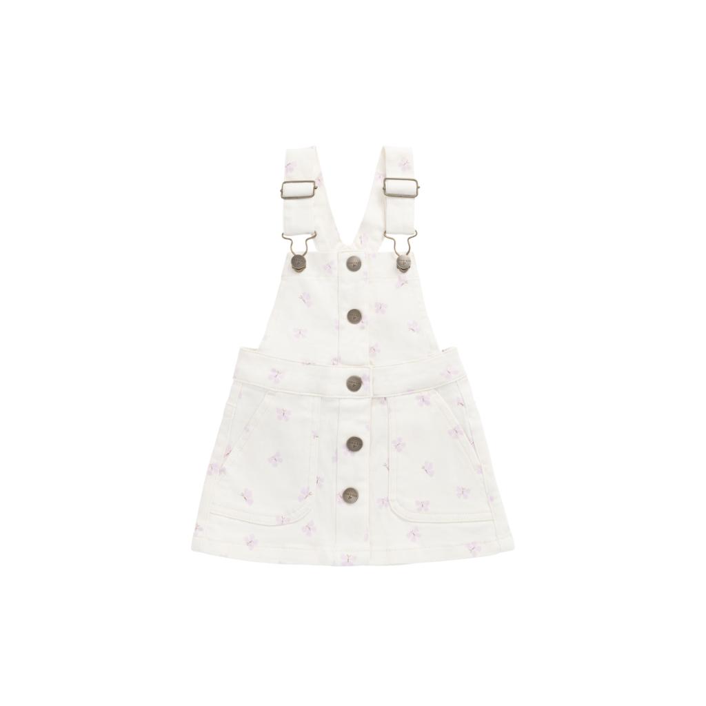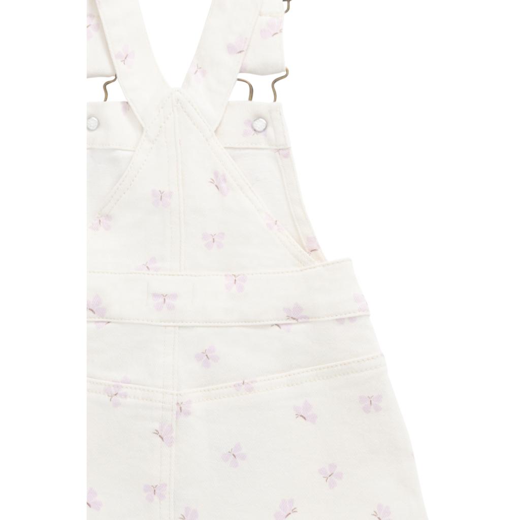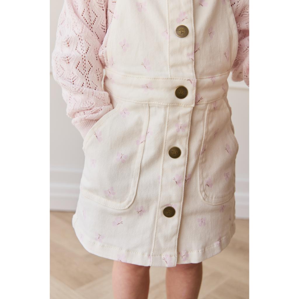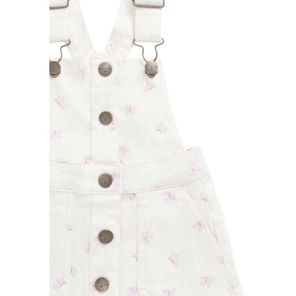 Gorgeous denim overall dress from Jamie Kay's Willow collection, in a soft creamy shade with sweet allover butterfly print.