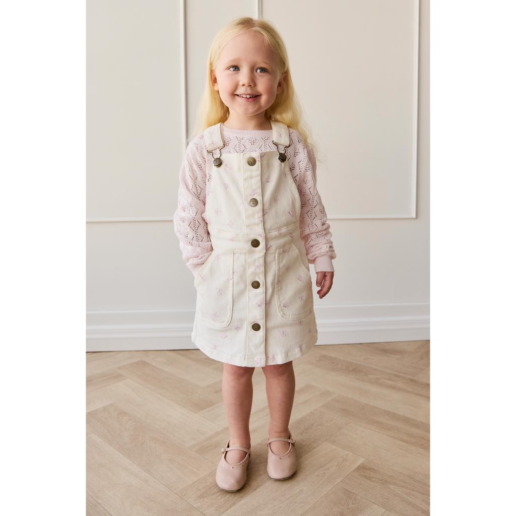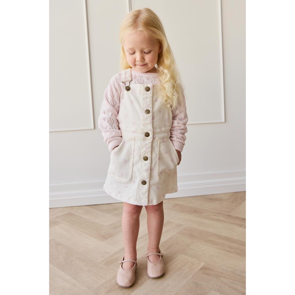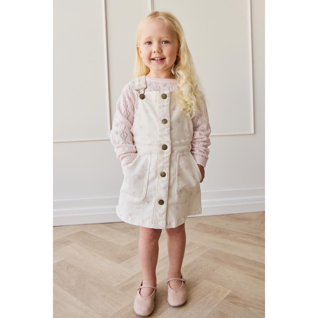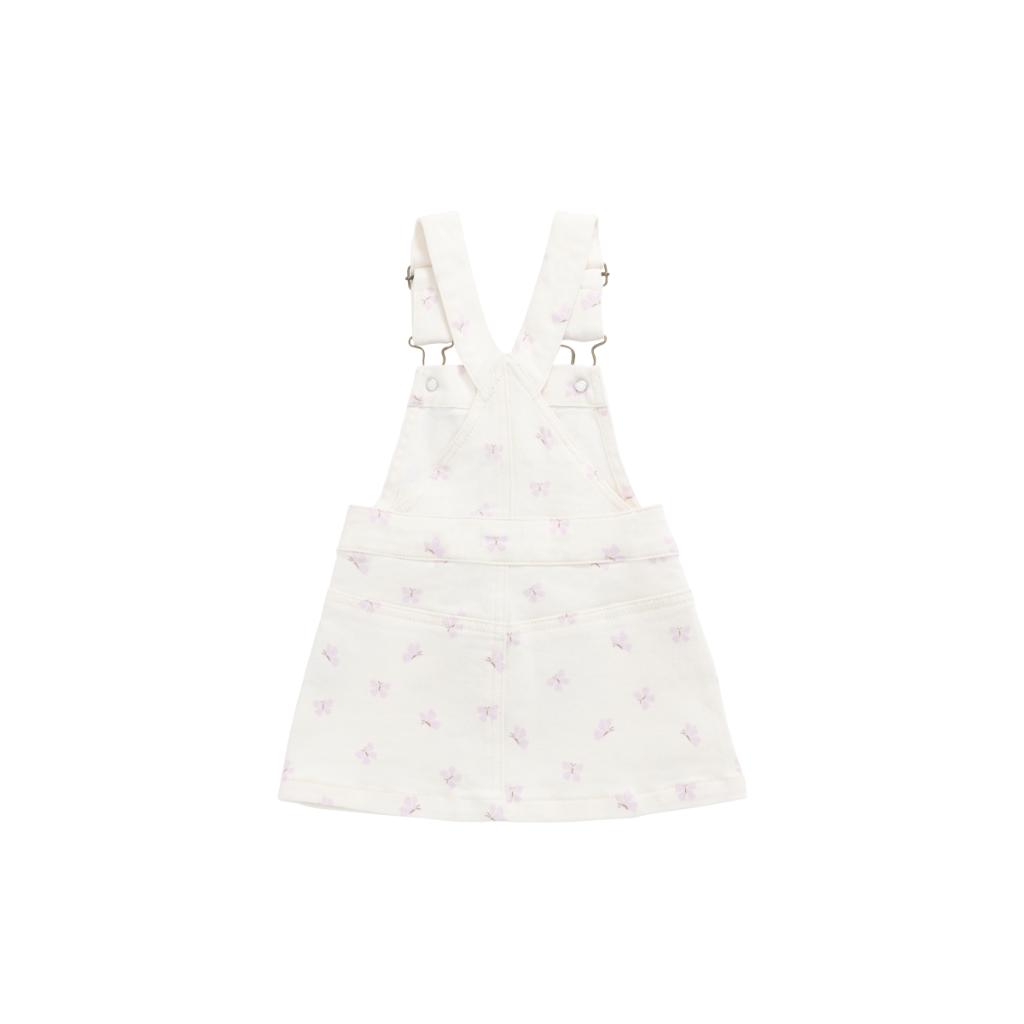 Gorgeous denim overall dress from Jamie Kay's Willow collection, in a soft creamy shade with sweet allover butterfly print.