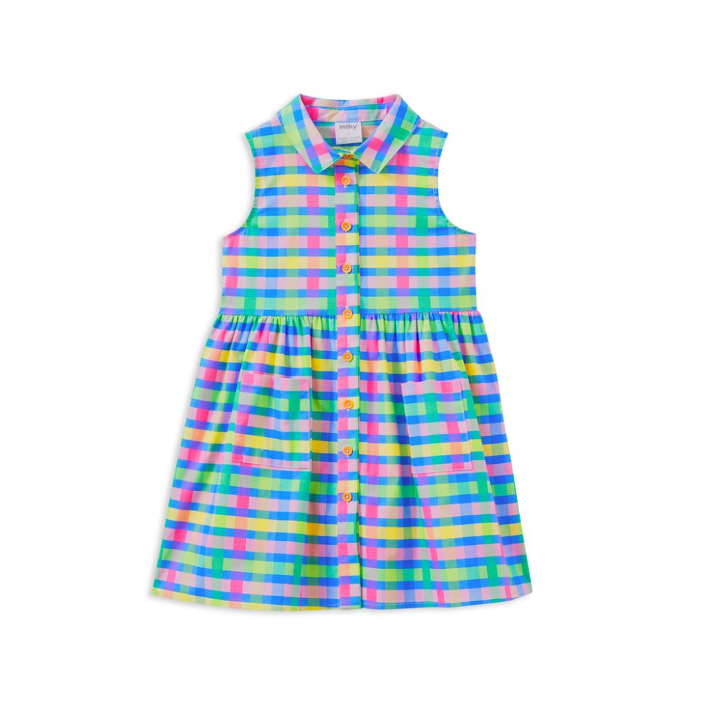 Add a burst of colour to your little one’s summer wardrobe with the Milky Picnic Check Dress. This sleeveless style features a playful all-over check print, a functional front button opening, and a gathered waist for a relaxed, twirl-worthy fit. Lightweight and breezy, it’s perfect for warm days filled with play, parties, or park picnics.