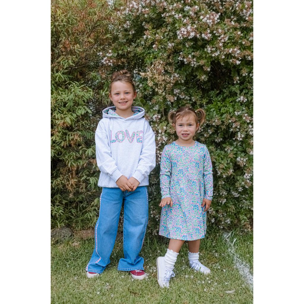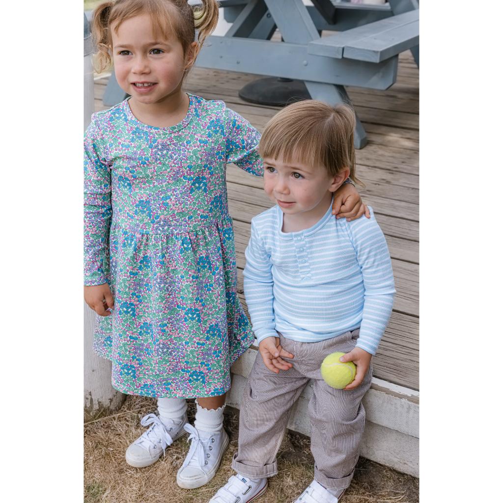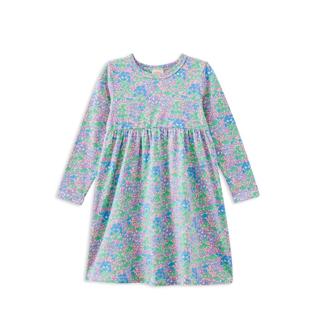 This sweet dress from Milky's winter collection is the perfect everyday go-to for comfort and colour. Made from soft stretchy cotton jersey, this easy-wear style features a soft floral & strawberry print with pops of purple and pink. With long sleeves, gathered waist and straight hemline it’s ideal for daycare, playdates and weekend adventures. Just pull it on and go.