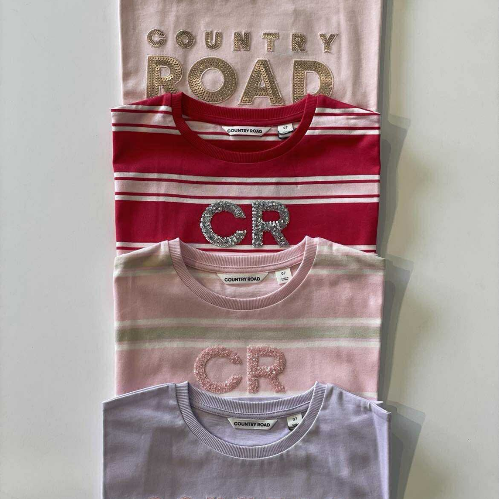 Country Road Stripe CR Sequin Tee (Dawn Pink)