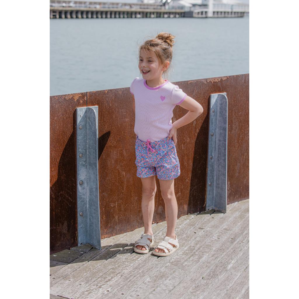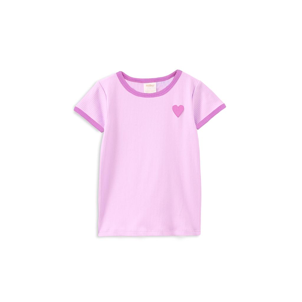 From the Milky summer range is this versatile short sleeve rib tee in pink; a must-have staple for your little one's summer wardrobe. Designed with a soft pink base and adorned with a dark pink heart puff print, this stylish tee offers effortless charm for any occasion. It features a classic round neckline, short sleeves, and a contrasting dark pink binding, adding a touch of flair. Pair it with your favorite Milky shorts or skirt for a relaxed, casual look, or layer it with pants or a cardigan when the weather cools. Crafted for durability, this tee is built to withstand countless washes while maintaining its comfort and style.
