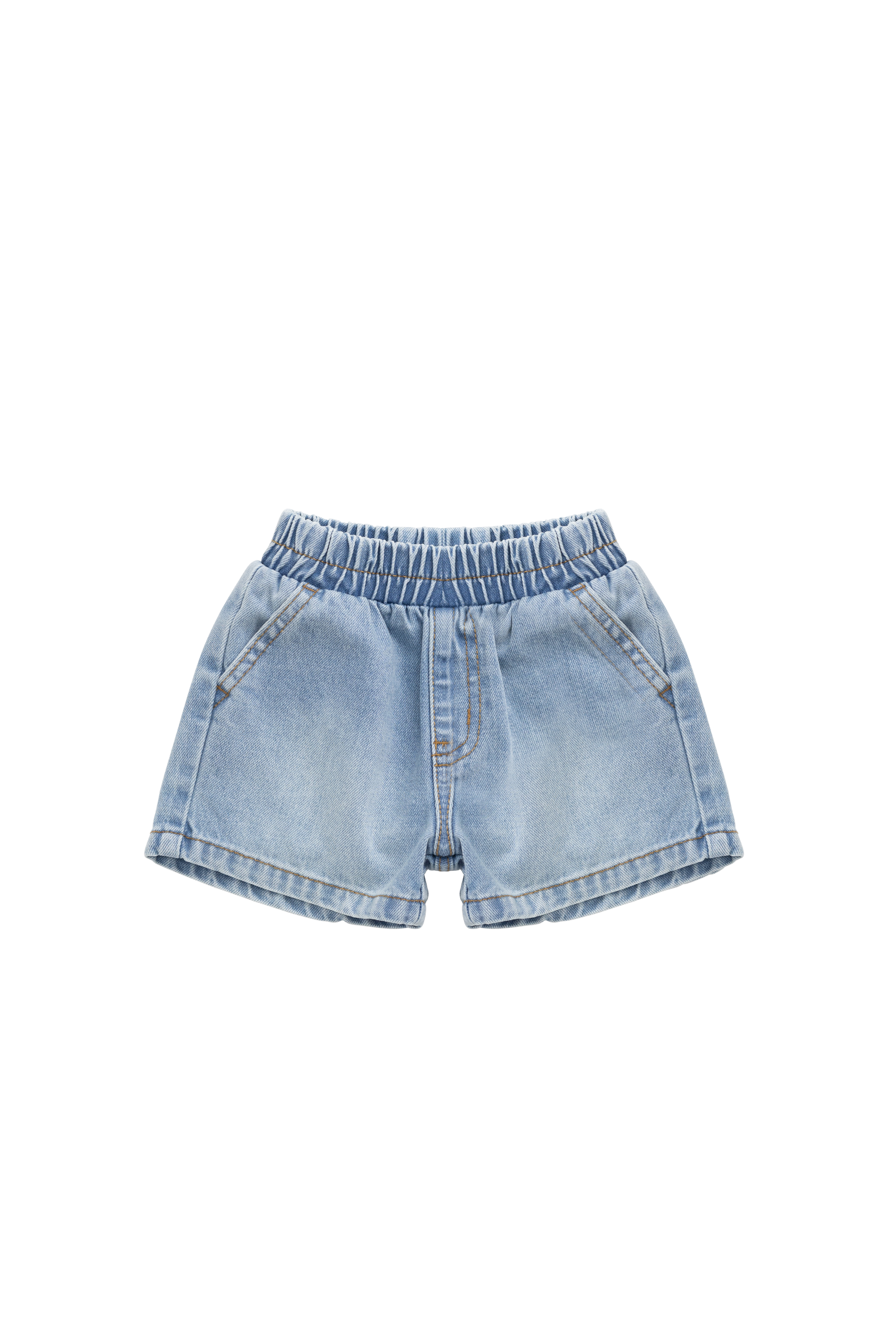 Featuring a soft elastic waistband, two front pockets, and classic stitching, these shorts offer a relaxed fit in a beautiful light vintage wash – perfect for everyday adventures and effortless style.