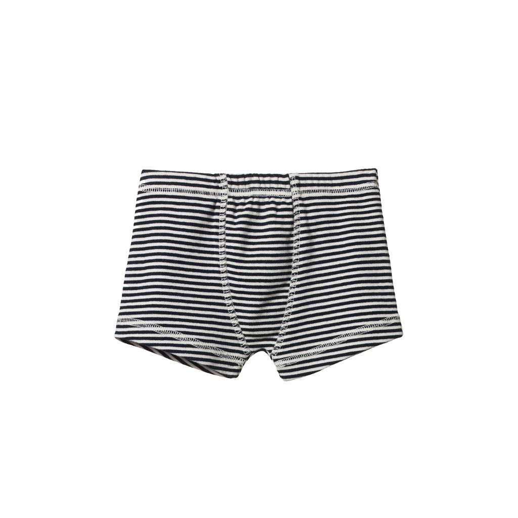 Soft and comfortable organic cotton boxer shorts from Nature Baby, in a classic navy stripe.