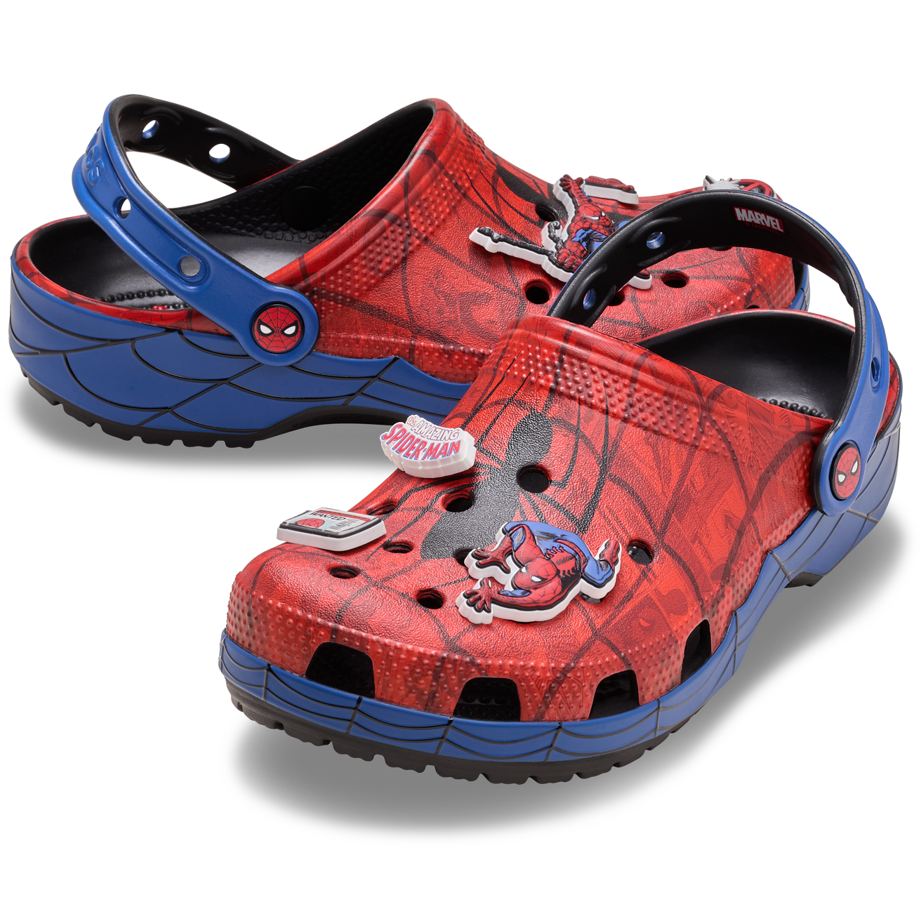 Your little superheroes will love the new Spider-Man Web Classic Clog from the Crocs range. The iconic clog gets a spidey transformation and features a subtle Spider-Man graphic print underneath his signature web and spider logo on the upper and heel. Each pair also comes with a collection of Spider-Man Jibbitz™ charms plus room so they can add even more of their favorite charms on the upper and heel strap.