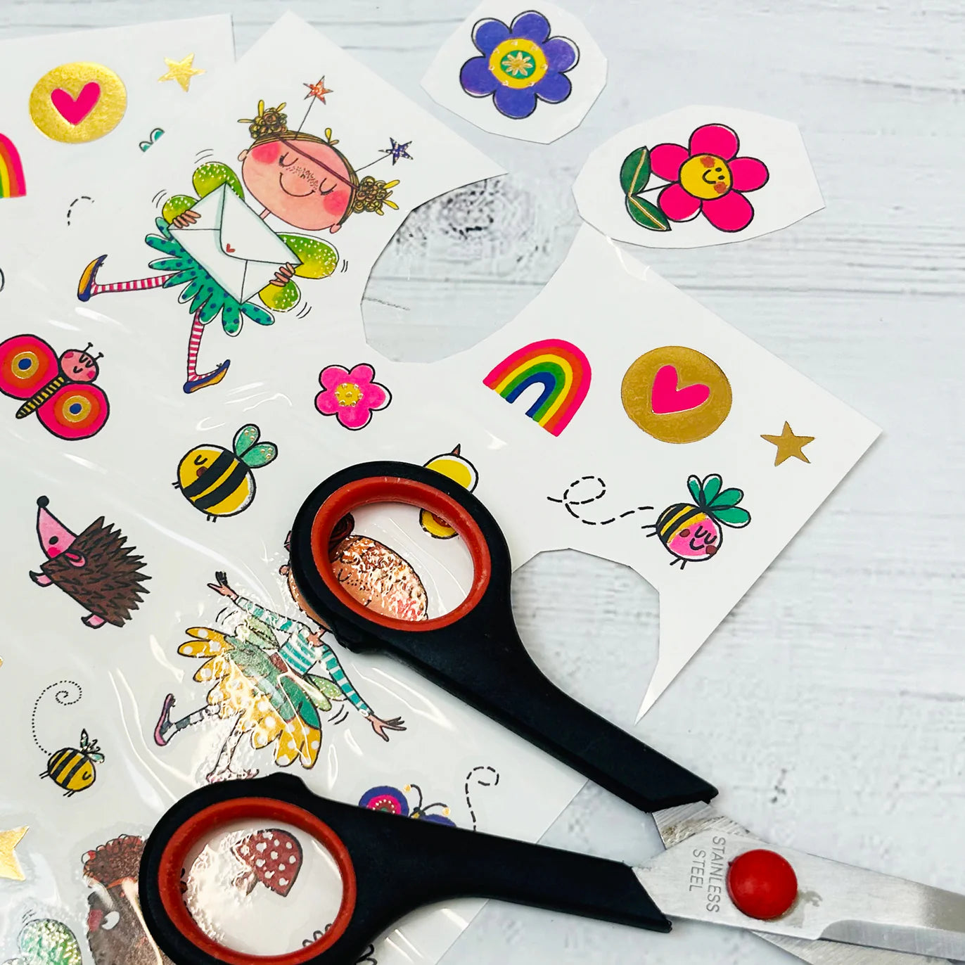 Each pack contains 2 sheets of tattoos featuring Rachel's unique cute characters, enclosed in a sturdy cardboard wallet. They can be easily removed with soap and water.