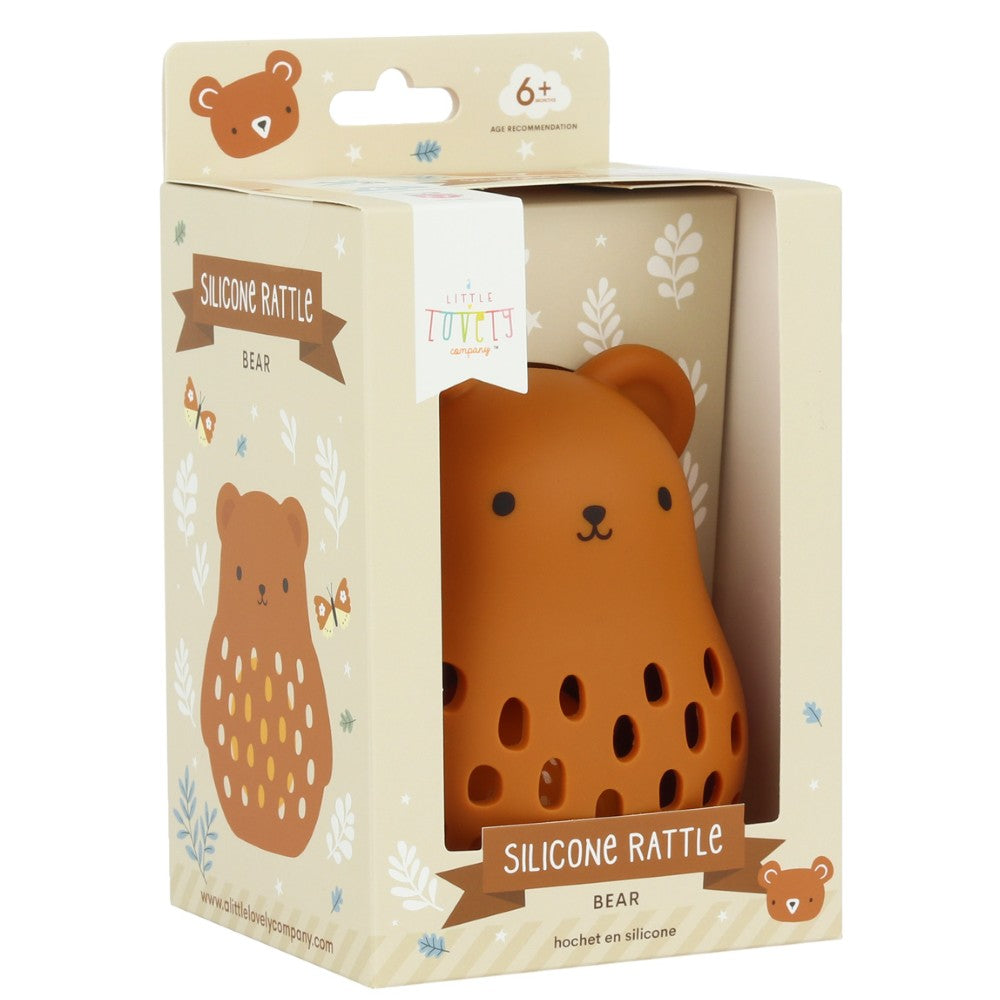 Playtime for baby just got a whole lot cuter! This adorable Bear Rattle from A Little Lovely Company is made from flexible, food-grade silicone, perfect for tiny hands to chew and explore. Features a gentle rattling sound that stimulates sensory development. Its rounded base adds a playful twist, doubling as a tumbling toy that delights and entertains. Thoughtfully designed for newborns, this bunny makes a charming new baby gift.