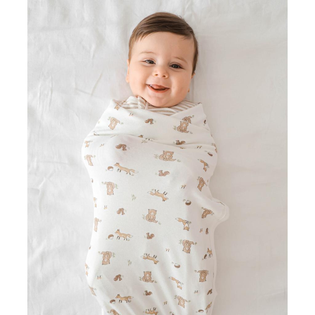 Featuring an adorable woodland creature print, this swaddle wrap from Lummi in Colour is soft and gentle on baby's delicate skin. Made from certified 100% organic cotton.