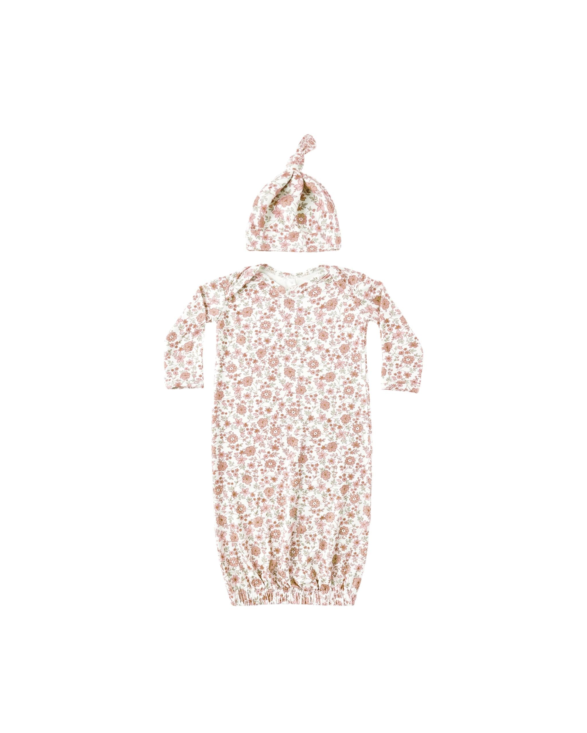 Quincy Mae Bamboo Baby Gown + Hat Set (Bloom)