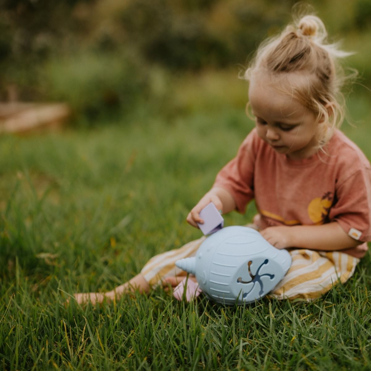 The Jellystone Narwhal Shape Sorter is ready to spark tactile exploration and develop motor skills through playful, hands-on learning. Bubs and toddlers can discover different shapes and colours as they sort each piece through the corresponding openings. With the specially designed base, the blocks hold within the narwhal but can be easily accessed when it is time to play again.