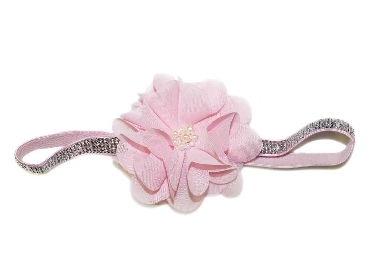 This soft stretchy baby headband from Goody Gumdrops features a chiffon flower with pearl centre detail on a sparkly silver band - a sweet accessory for your little one, perfect for photoshoots or special occasions.