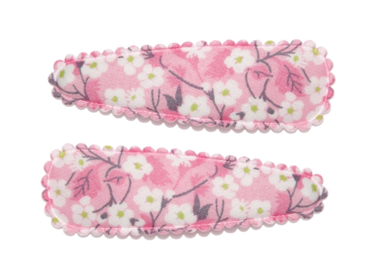 Pair of non-slip hair snaps covered in Liberty Mitsi Valeria fabric, from the Goody Gumdrops range of beautiful hair accessories.