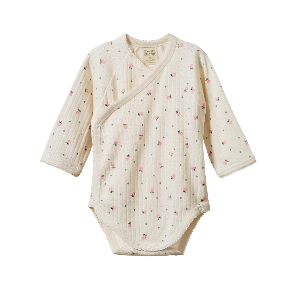 Nature Baby Organic Cotton Pointelle L/S Kimono Bodysuit (Posey Blossom Print)