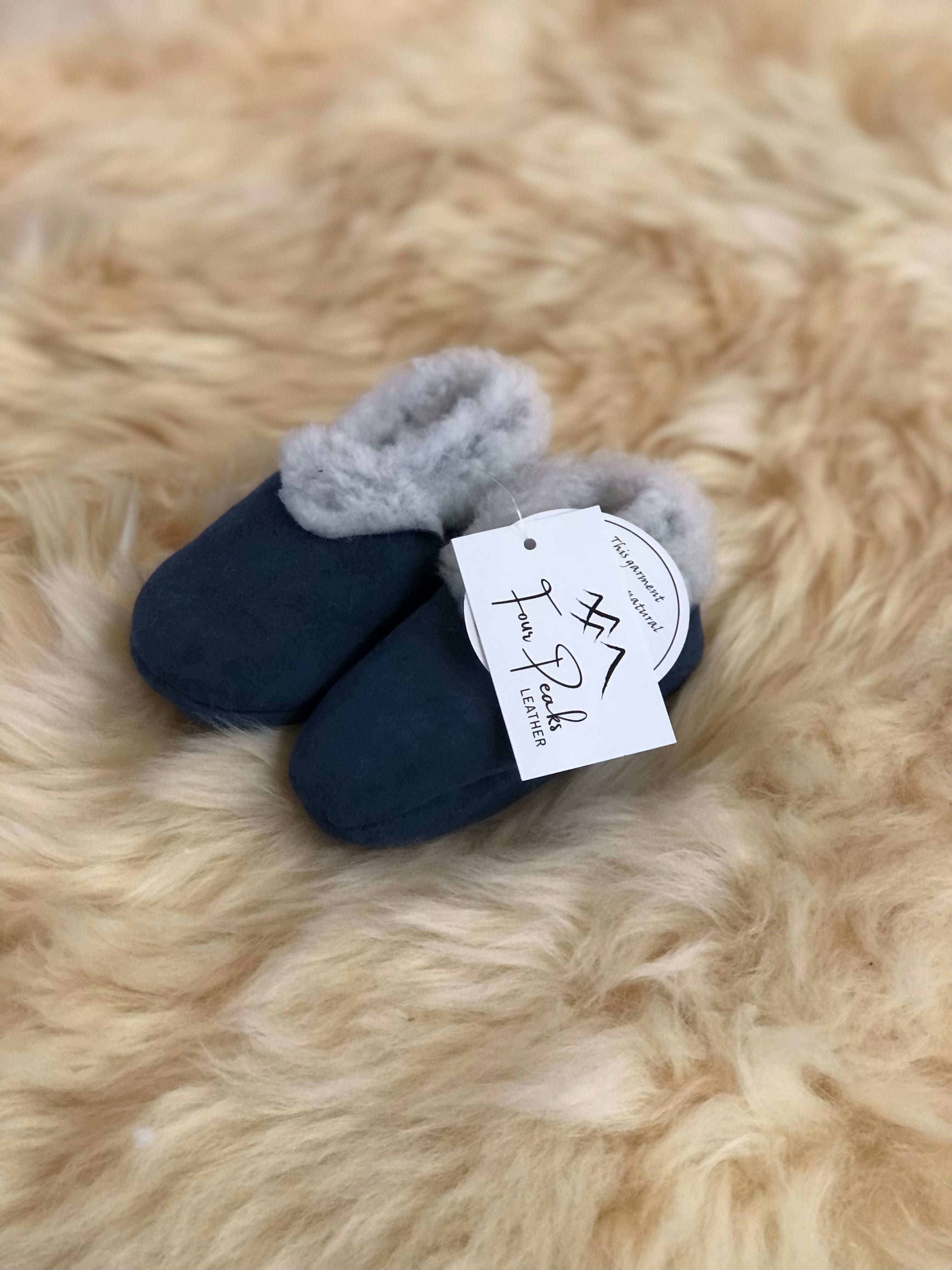 Lambskin booties from Four Peaks Leather. These make great baby slippers over the winter. Fully wool lined they keep little feet snug on cold winter days. A popular baby shower gift.
