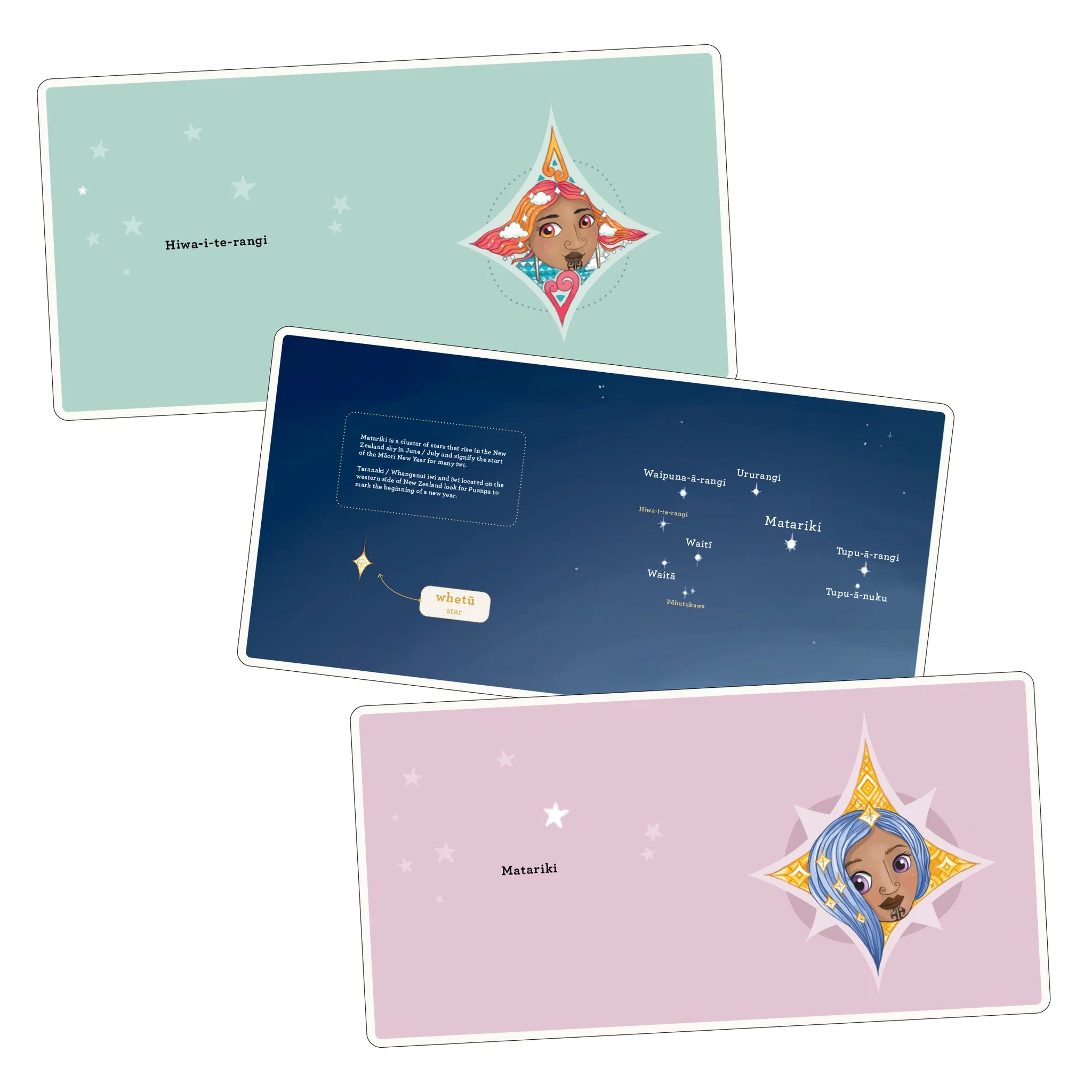 Celebrate and learn more about Matariki with this beautifully illustrated board book for little ones. Each spread includes the name of one of the nine stars of Matariki, its placement in the night sky and a colourful and detailed illustration highlighting the meaning behind each of the stars.