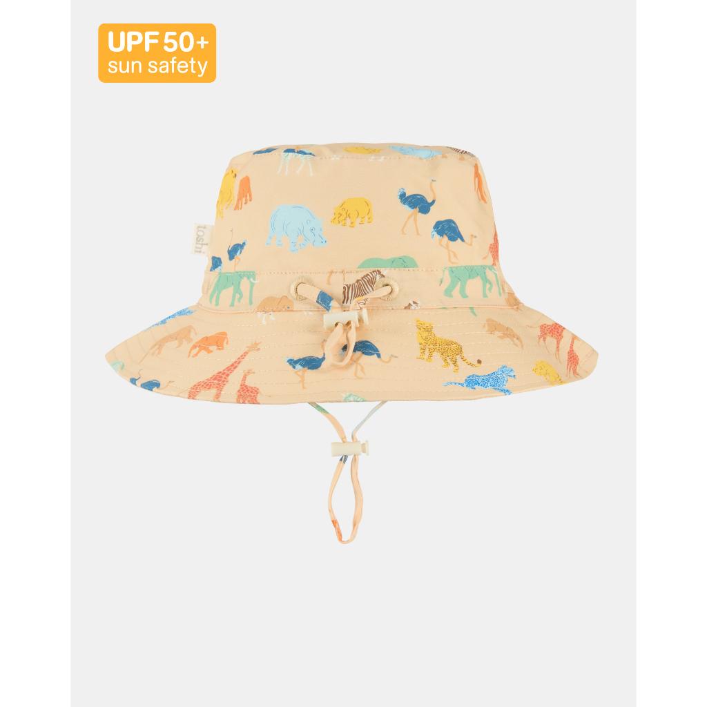 Toshi presents the classic Sunhat Banjo, ideal for children of all ages. This sunhat has a broad and well-structured brim, with a UPF 50+ UV rating for maximum sun protection. The head tie with toggle creates adjustable sizing, and a chin tie with toggle secures the hat for ease of wear. The security release clasp on the chin tie is designed to enhance wearer safety. This classic Toshi Sunhat is crafted from the finest quality 100% cotton and is fully lined for additional comfort. An original and exclusive Toshi print design is featured.
