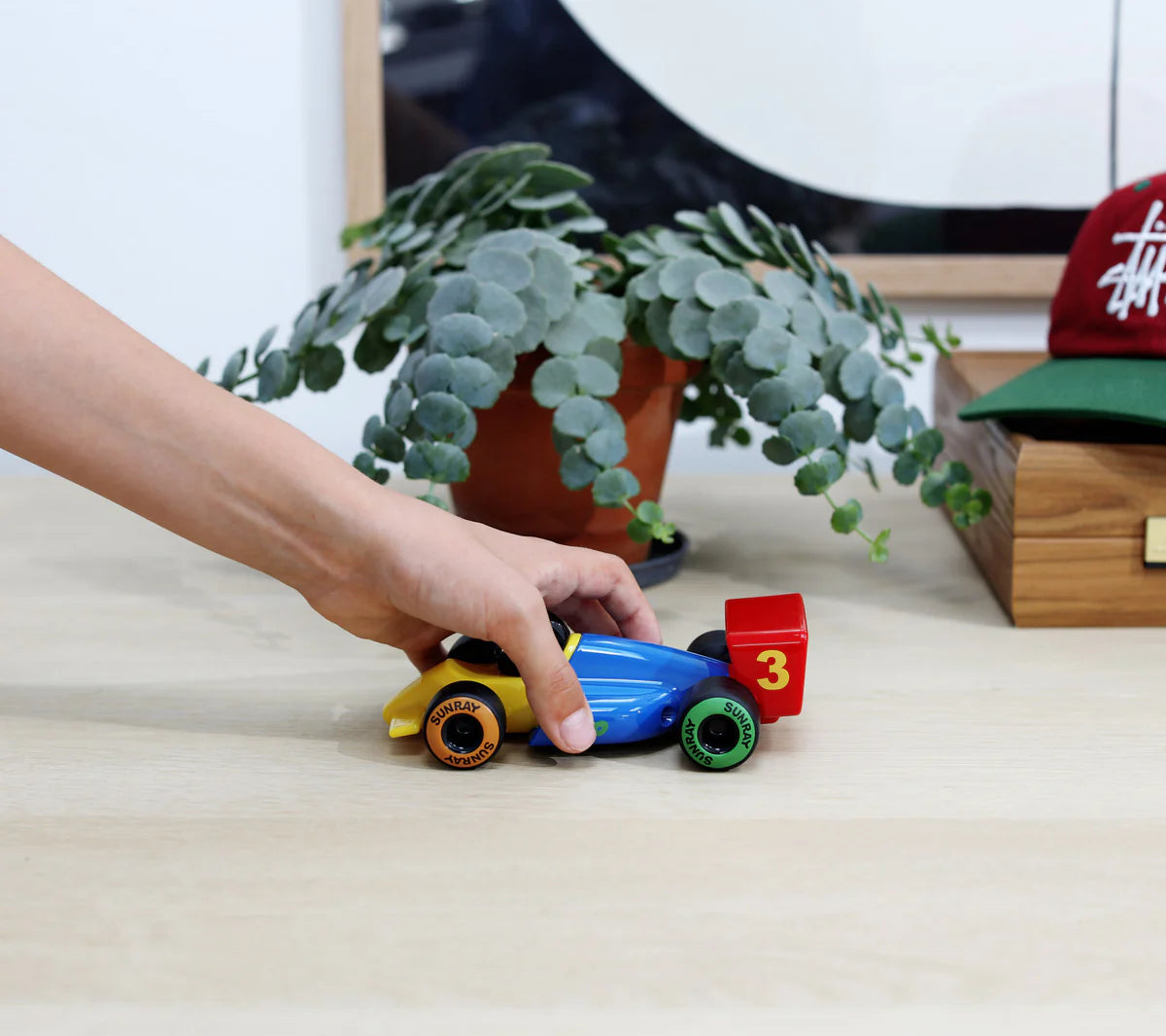 Turbo Miami race car toy from the Playforever collection of heirloom toy vehicles, inspired by Formula 1 cars of the 1980s.