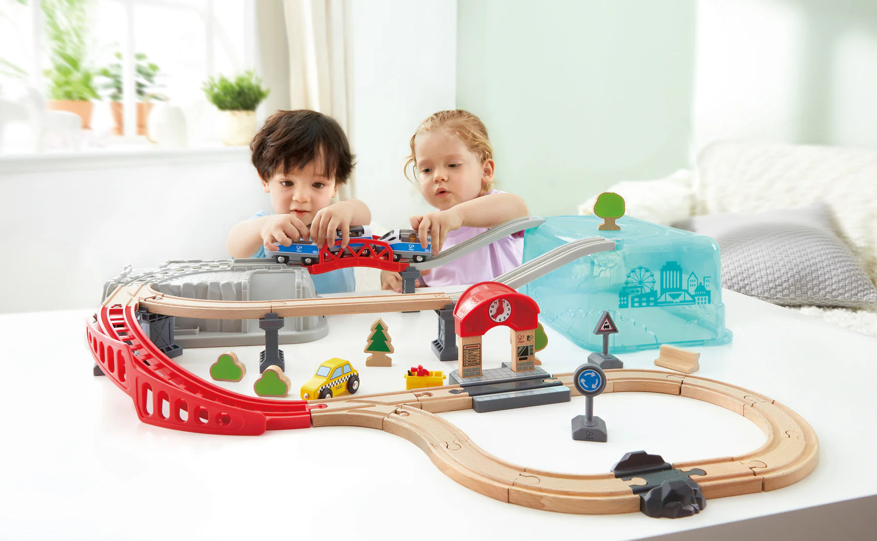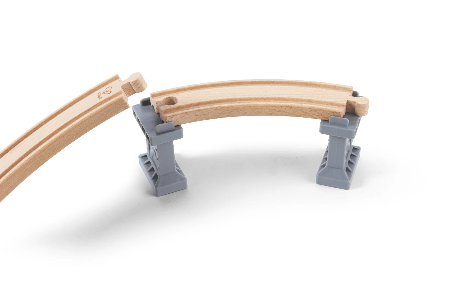 Enhance your railway adventures with this 6-piece pier accessory set from Hape. Children can experiment with track elevations, designing unique railway layouts that challenge their engineering skills and spark their imagination.