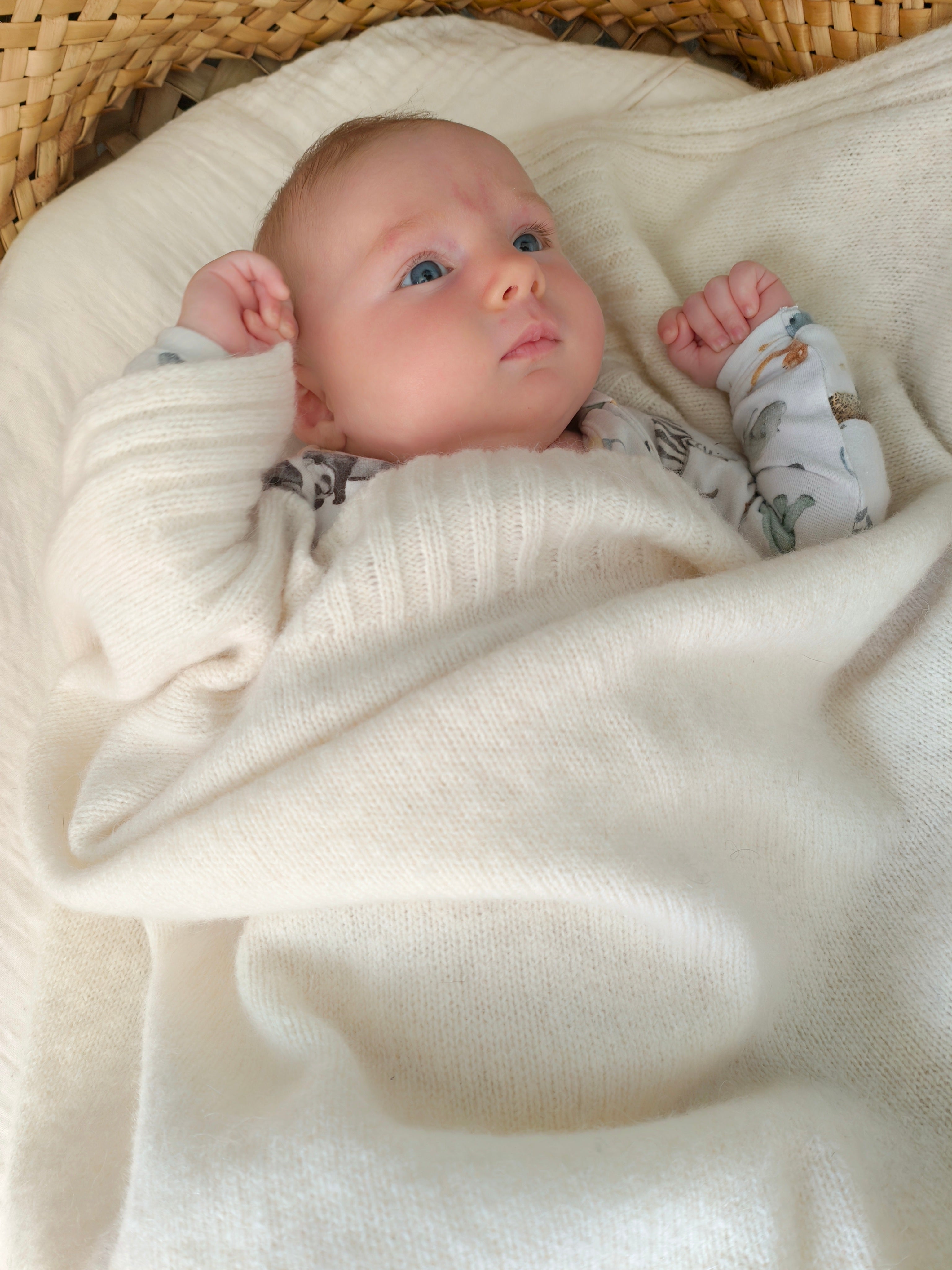 This gorgeous cream-coloured baby blanket from Wyld is an ideal newborn baby gift. Made in New Zealand with a blend of Bohepe, Merino, and Baby Alpaca wool.