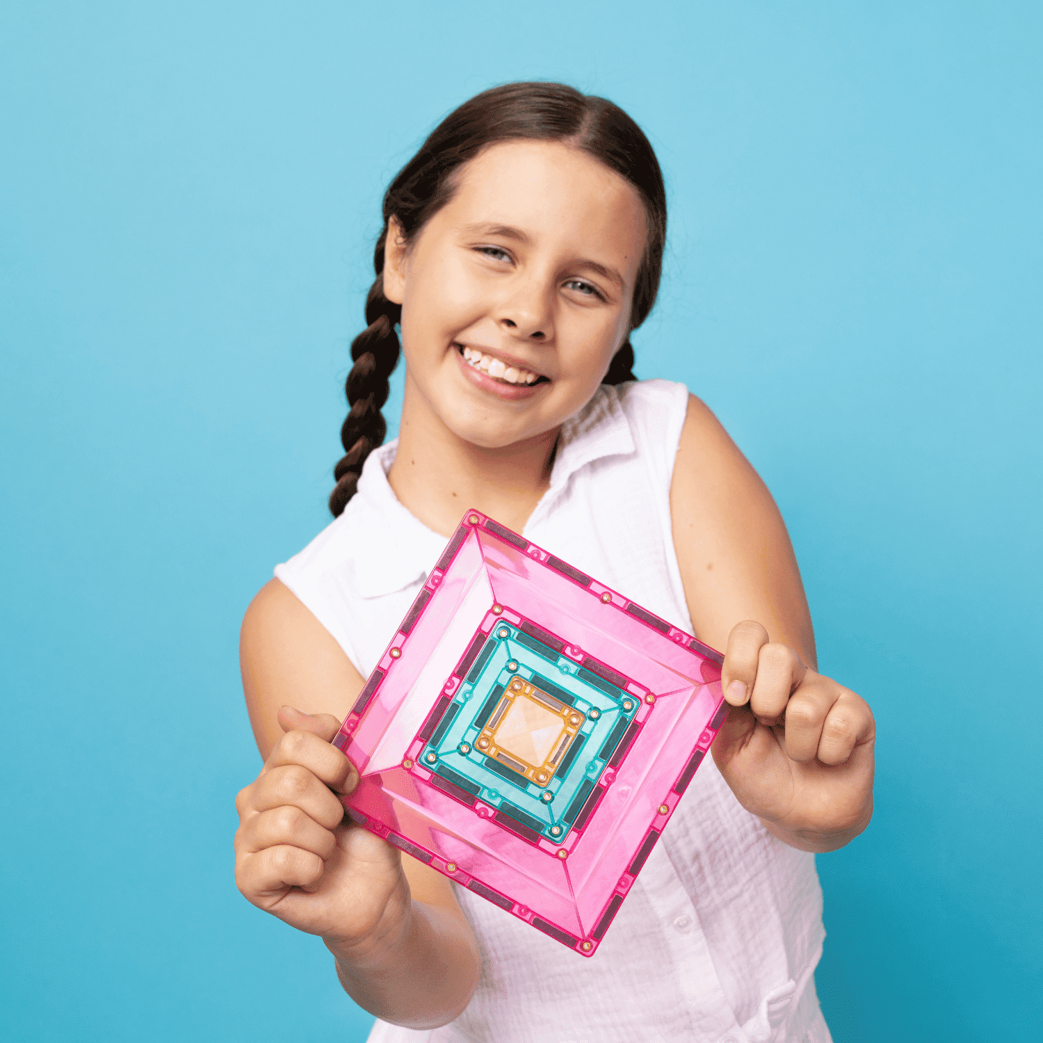 Step into a new dimension of creative play and explore the endless possibilities of the CONNETIX Portal range. Featuring 8 signature pastel colors, this pack introduces three different sized squares which neatly nest together to level up open-ended play and STEM learning. The large and standard portal tiles feature unique open-frame design with multiple magnetic connection points on the inner and outer edges, while the mini-squares showcase CONNETIX Smart-Spin technology, allowing magnets to rotate within the tile to build in new directions. Mix and match pieces to create intricate designs, from houses and spacecrafts, to faces, tunnels, kaleidoscopes and more. The Portal range will inspire budding engineers, space enthusiasts, next-generation scientists and aspiring artists as they create, learn and play!