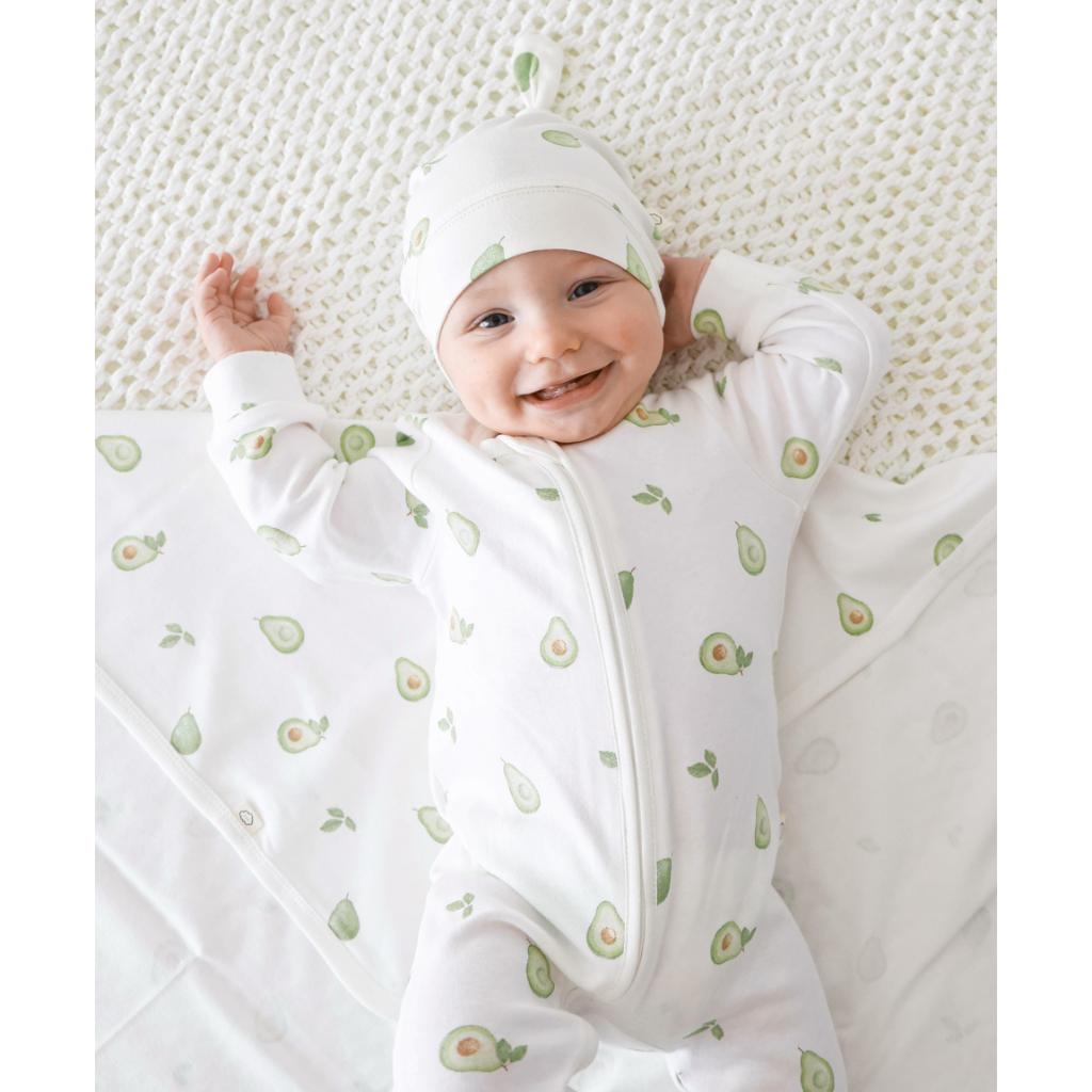 This comfy all-in-one from Lummi in Colour is both functional and beautiful, crafted from the finest GOTS certified organic cotton. Features a two-way zip and a safety fold for quick and easy dressing. Soft and stretchy, this growsuit is an easy-care, fuss-free option that’s easy to wear thanks to its modern, fitted style. Suitable for loungewear, daywear, birth announcements, or any occasion it may be, it makes a great baby gift! Features a super cute avocado print.